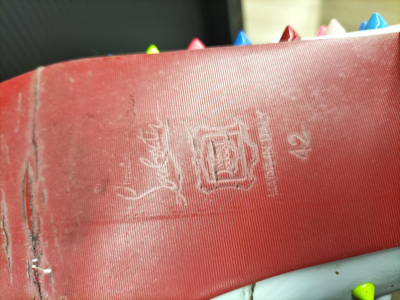 内側のロゴ部分取れかかってます。