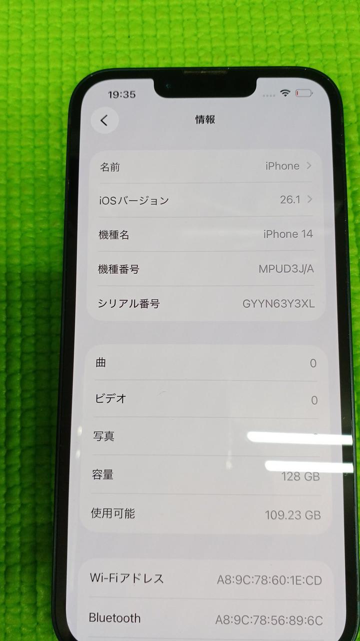 128GB 利用制限▲ バッテリー 最大87%