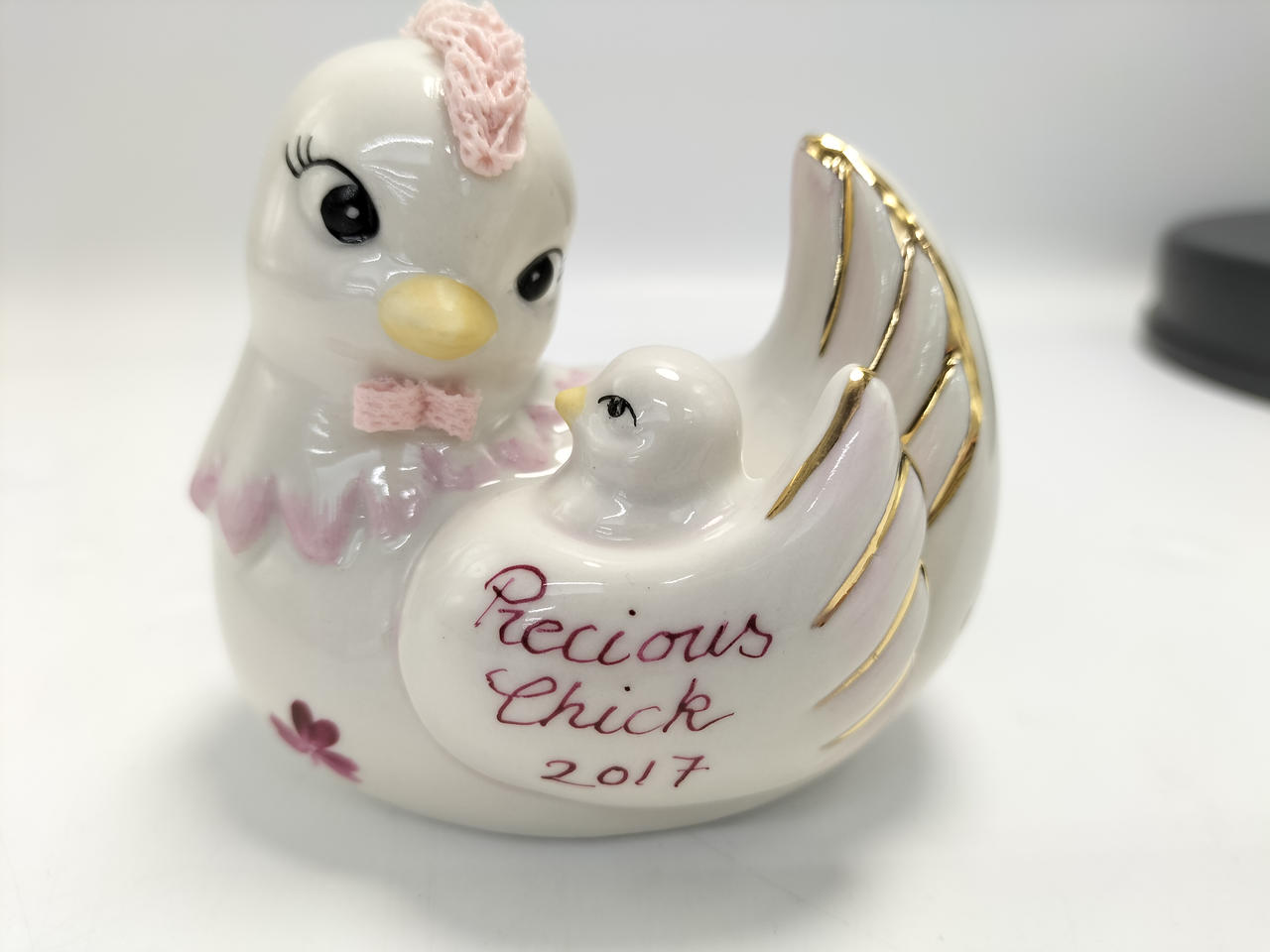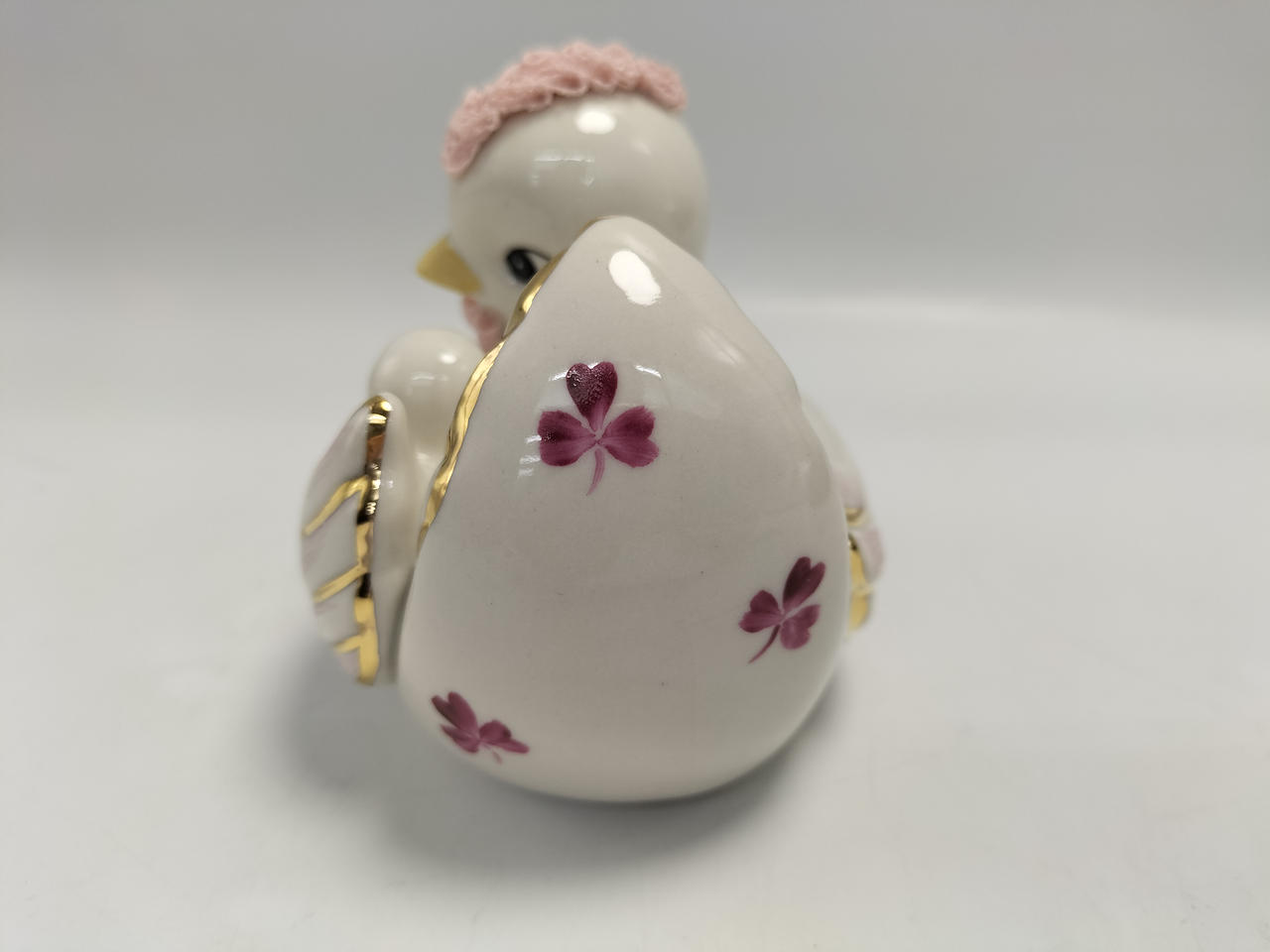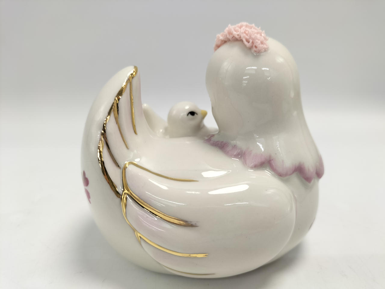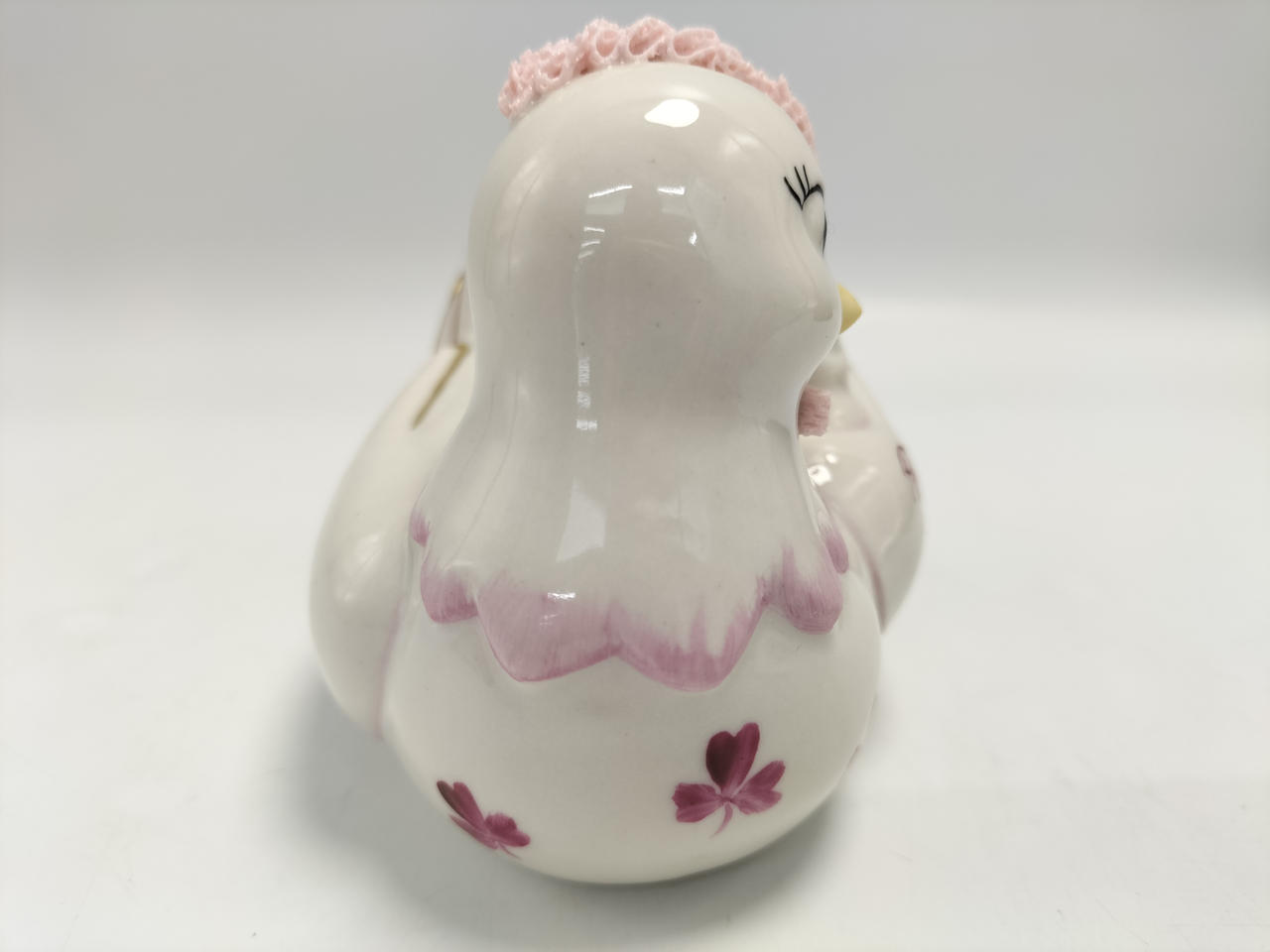 磁器粘土を染み込ませた本物のレースを人形に着せ付け、高温で焼成して作られる繊細な磁器