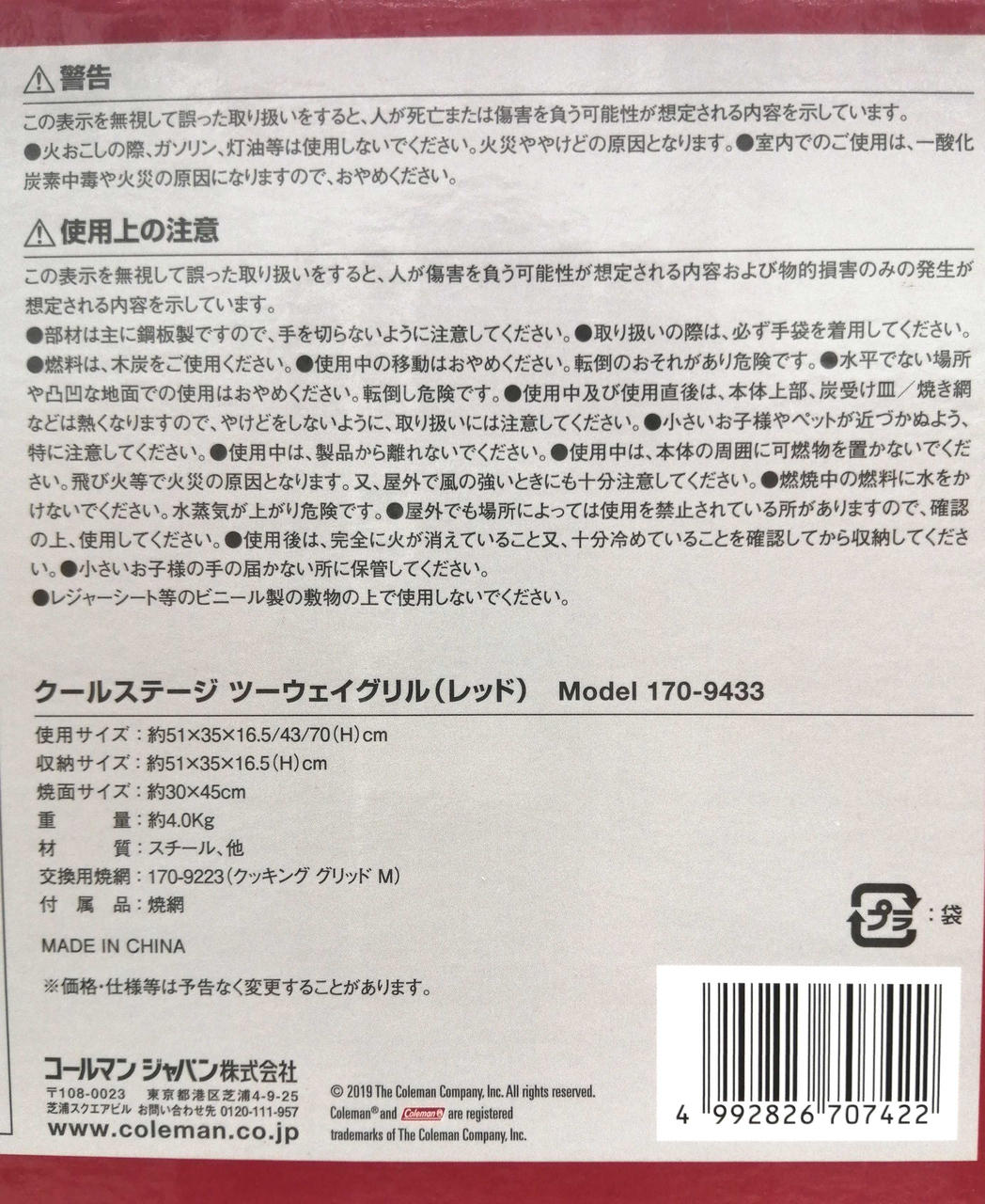 Coleman製 クールステージツーウェイグリル(レッド)です。