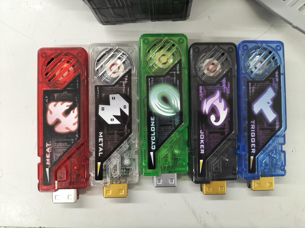 サイクロン、ジョーカー、ヒート、トリガー、メタルのメモリが付属! |