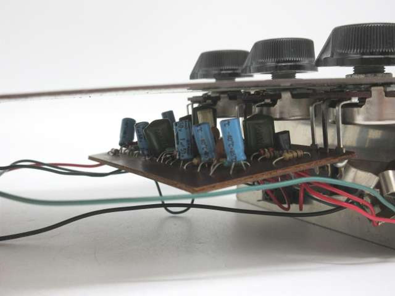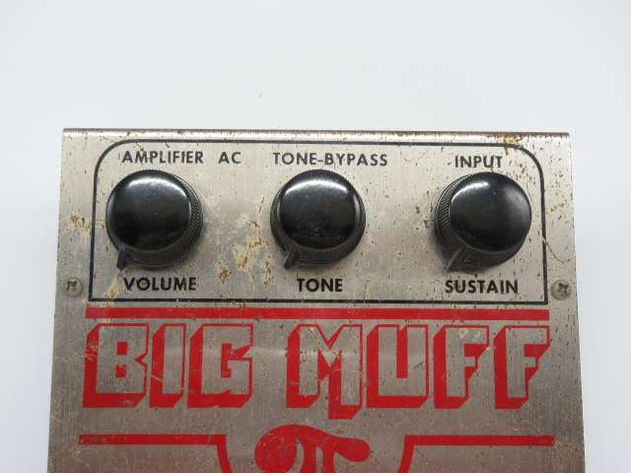 TONE-BYPASS搭載チキンノブ仕様のビンテージBIGMUFF。ポットデイトから84年製だと思われます。 |