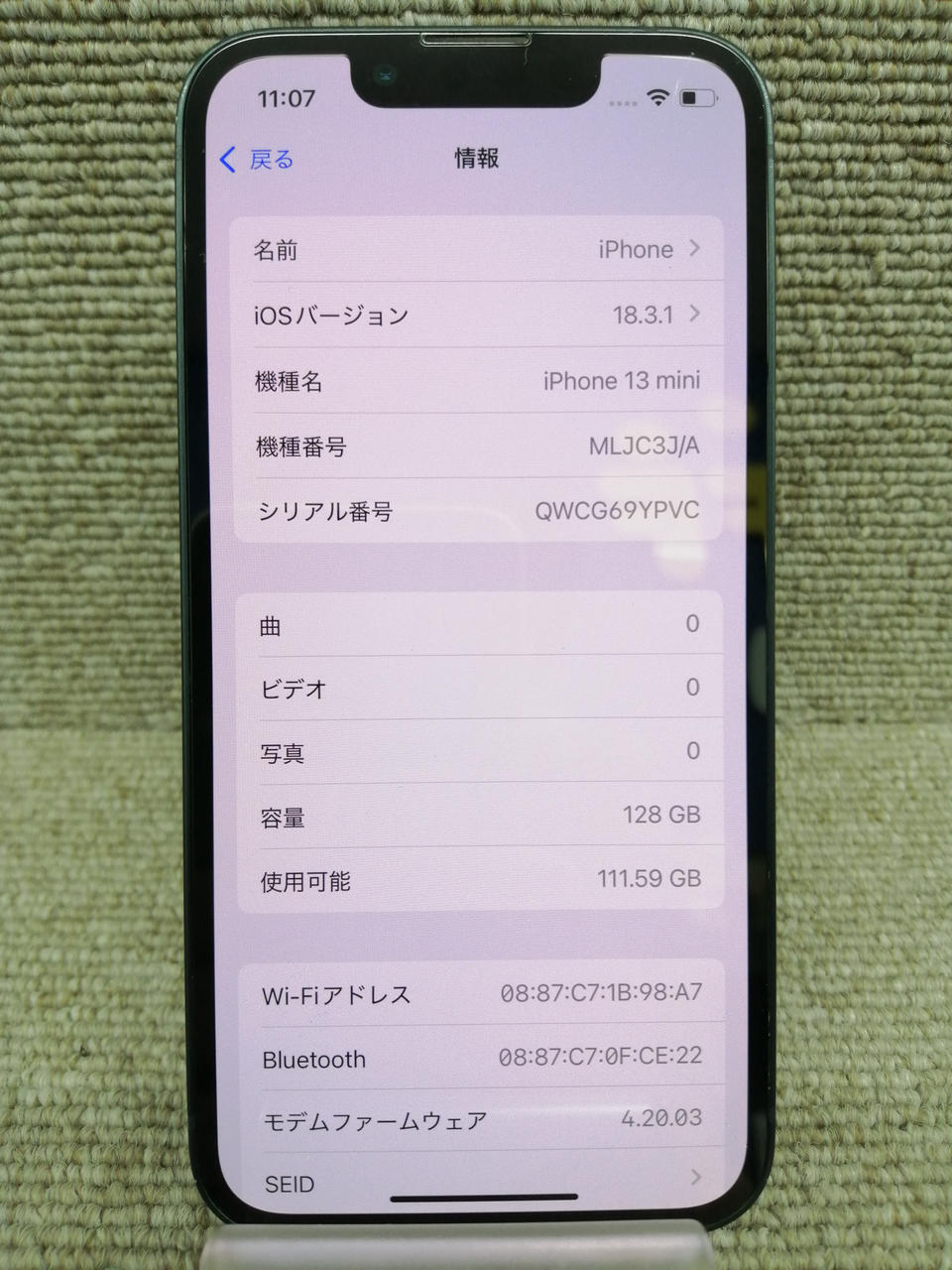キャリア:SBM(SIMフリー) バッテリー:85% ストレージ128GB IOS18.3.1 |