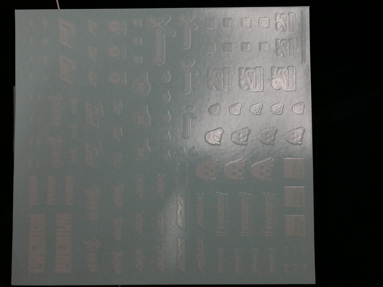 交換用パーツ一式、パイロットフィギュア、武装パーツ一式、Three-zeroデカール |