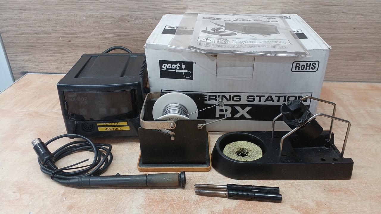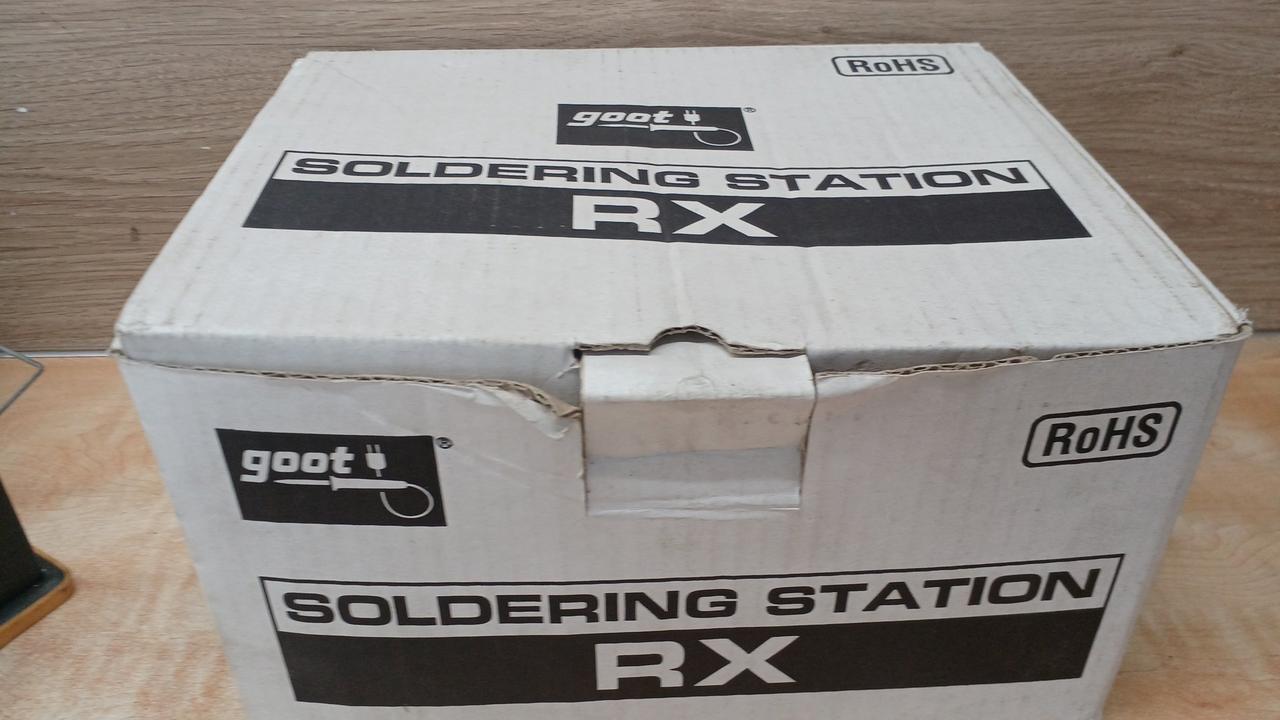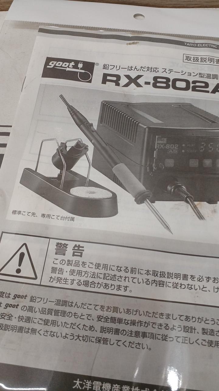 、箱入りで、コテ台、はんだ台も付いています |