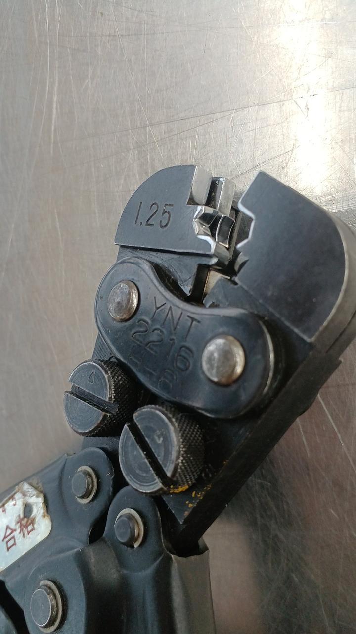 絶縁被覆付端子(呼び1.25)および接続子を専門に圧着する、軽量で持ち運びに適した手動式工具です。 |