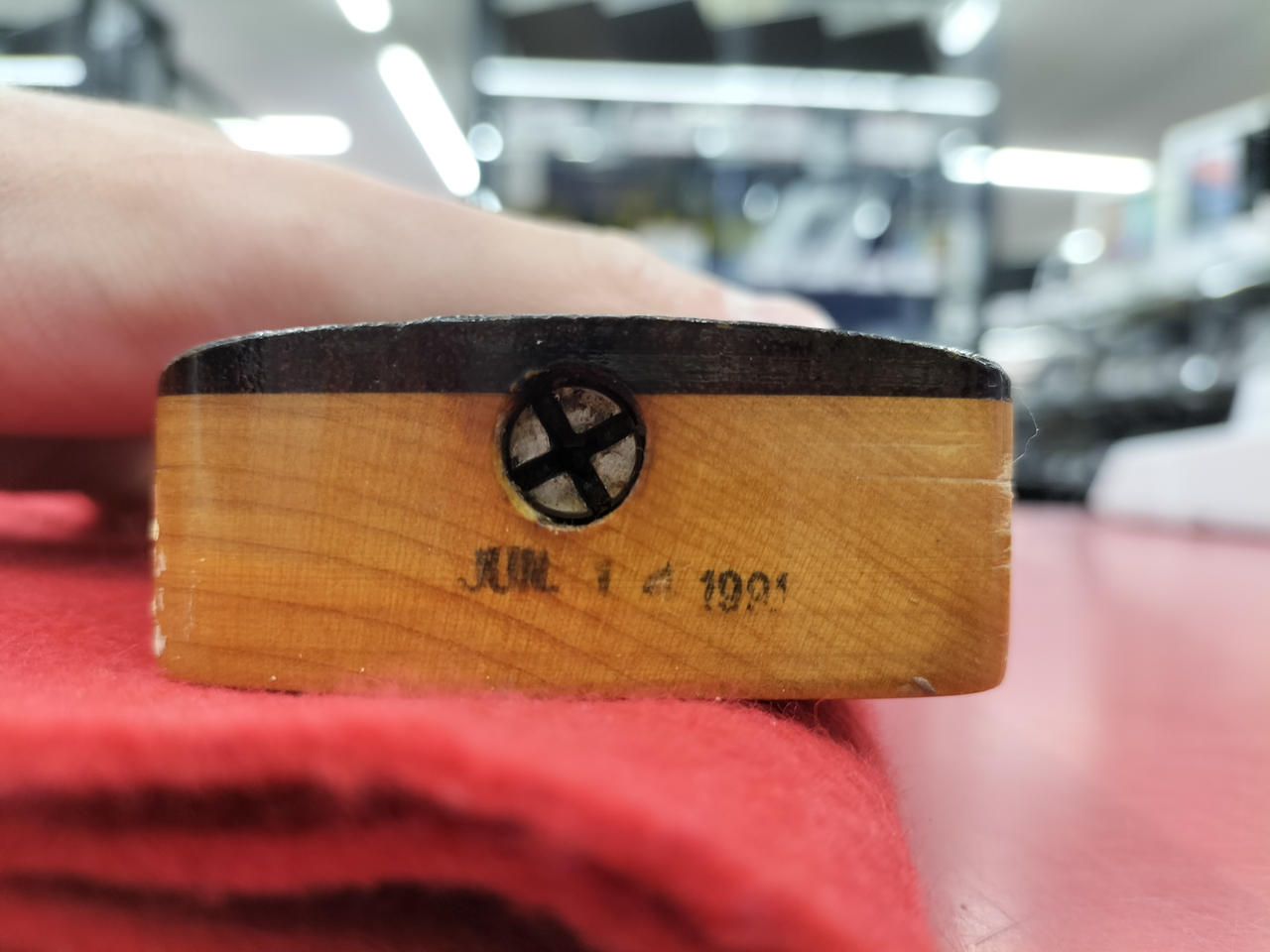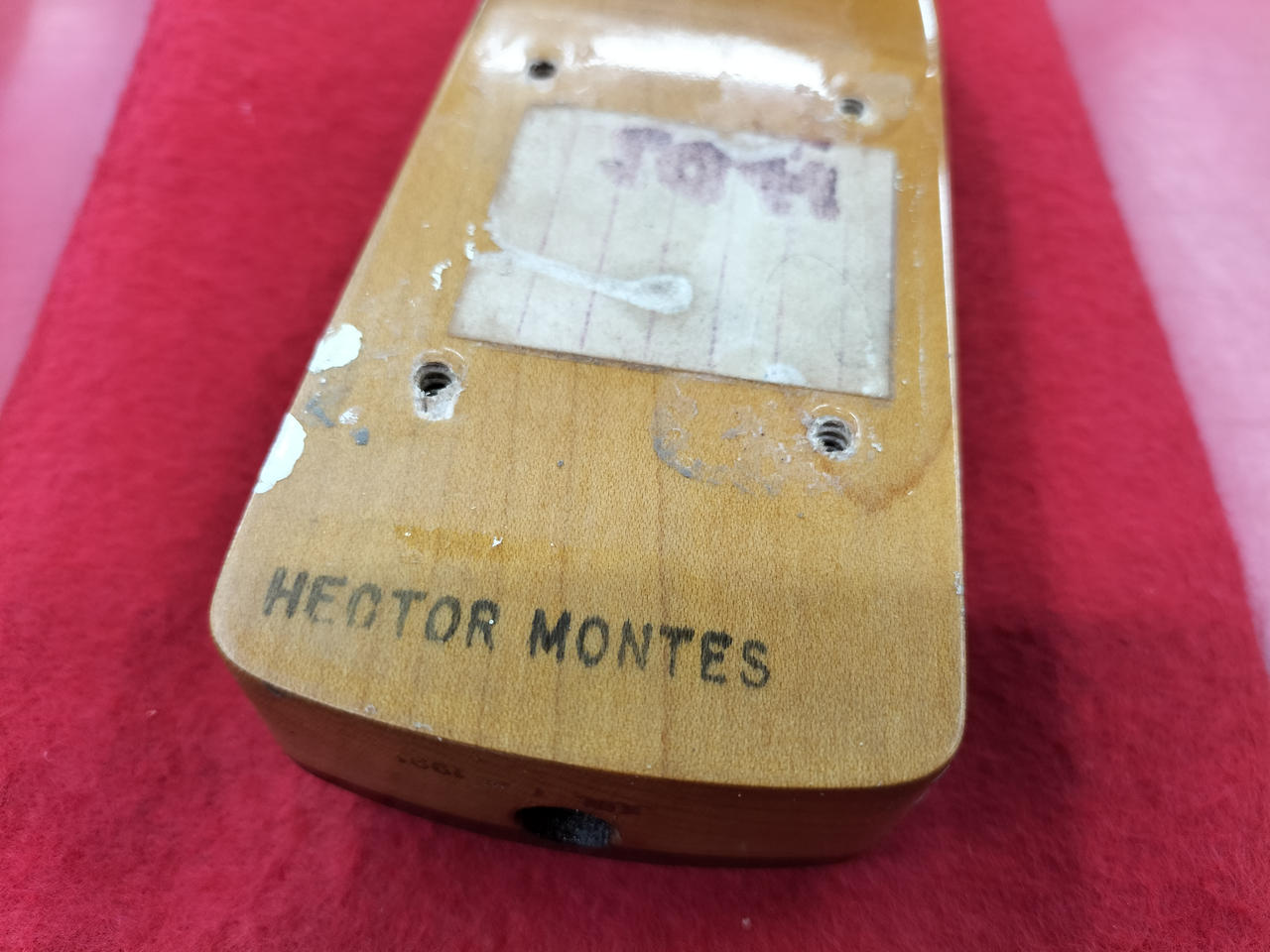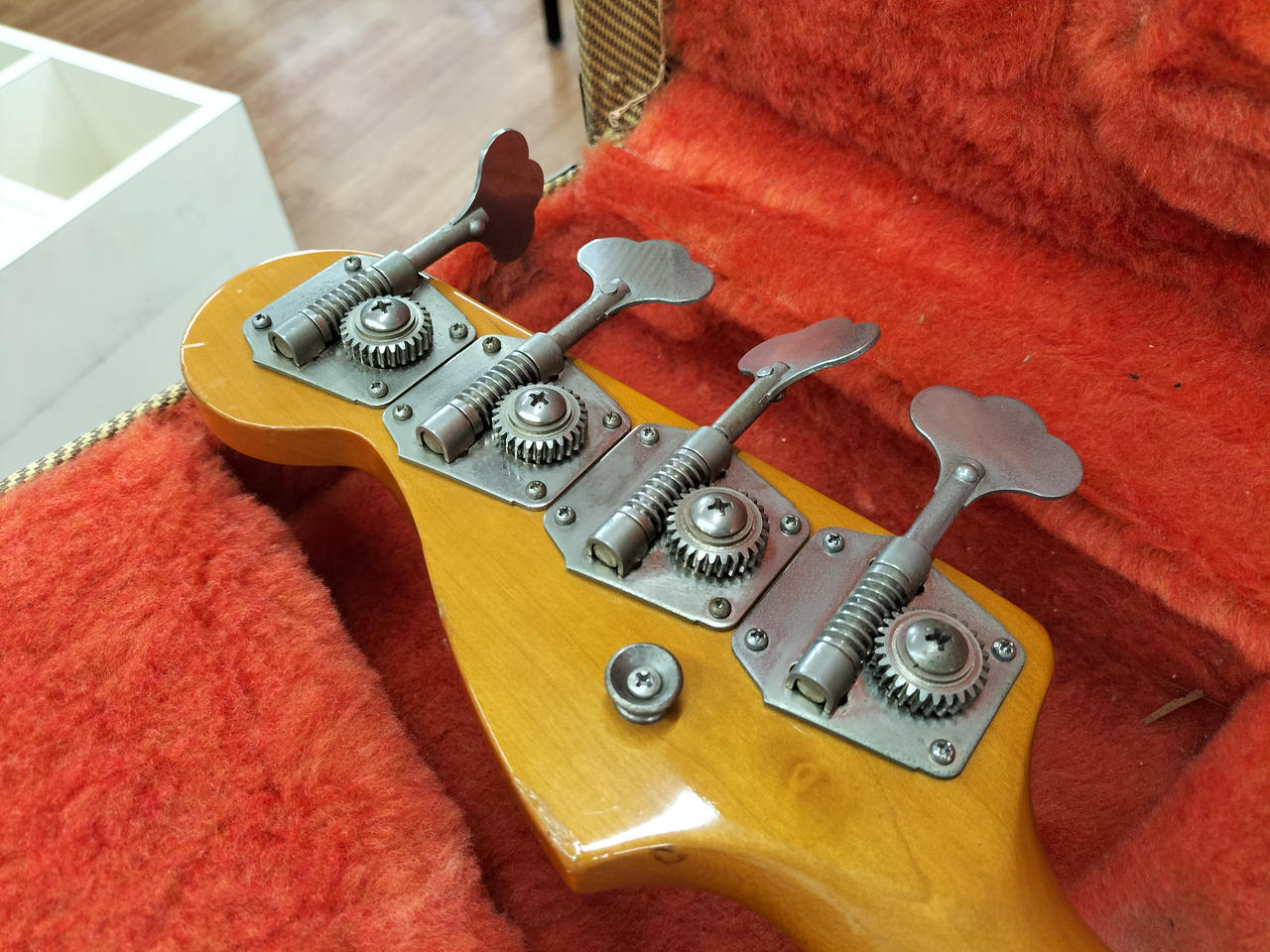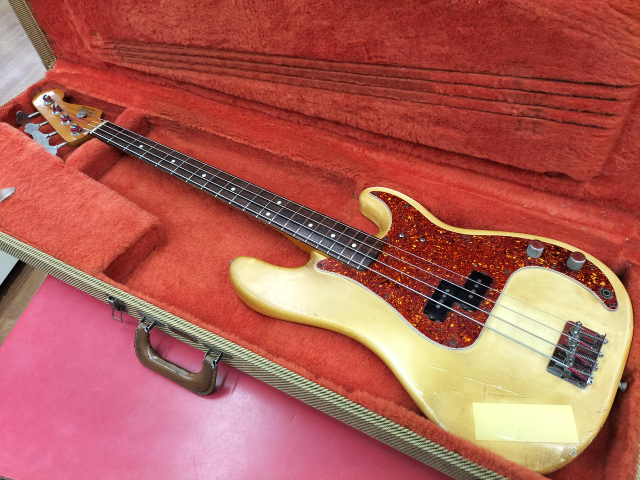 もともとのホワイトボディがヤケており、ビンテージ感のある渋いルックスです! |