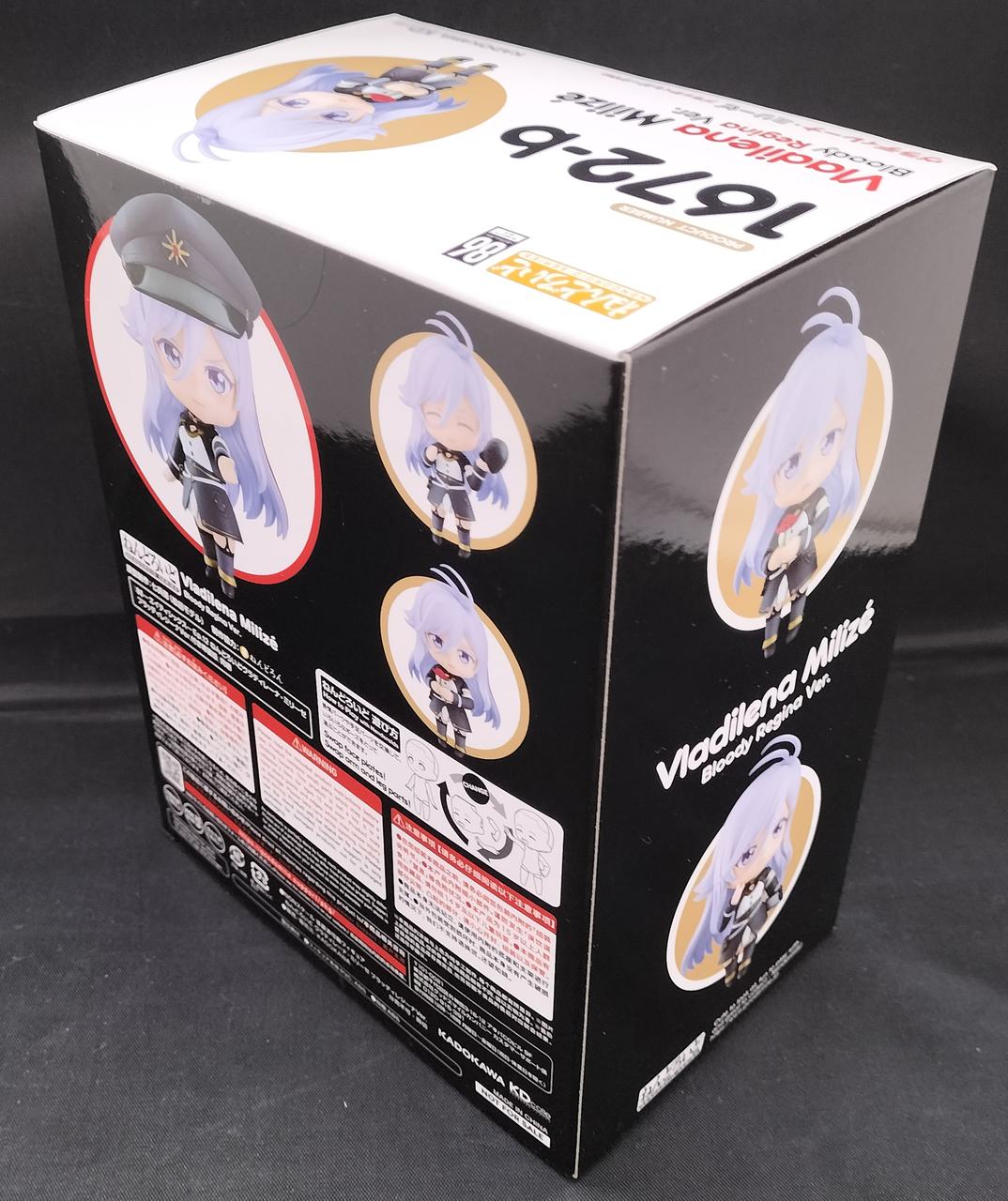 セット内容:フィギュア本体、交換用表情パーツ×3(泣き顔・笑顔・真面目顔)、交換用腕(左右各1) 軍帽、軍帽(左腕)、バインダー(左腕)、リコリスの花(右腕) 専用台座一式(台座本体・アーム(支柱))、予備ジョイント、説明書 |