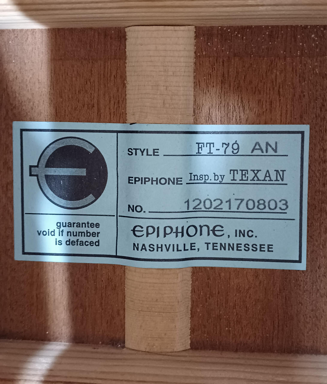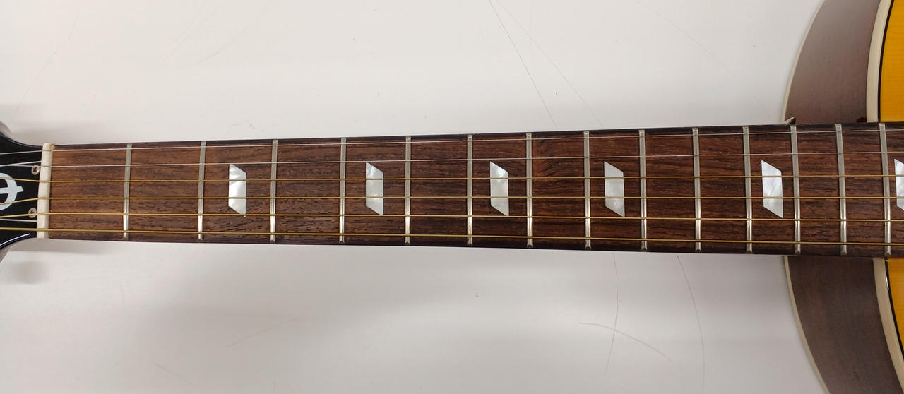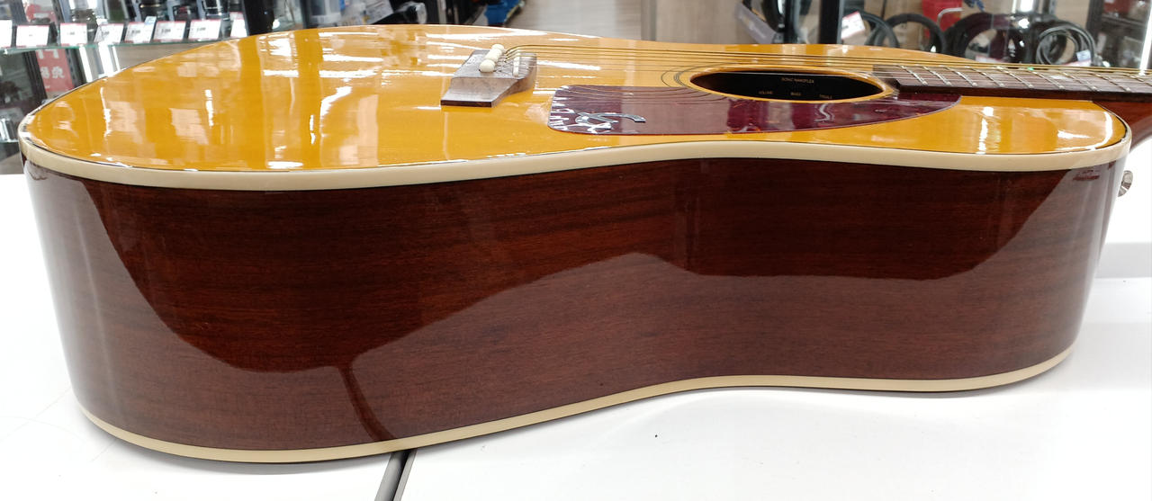 ポール・マッカートニーらの愛用が有名なEpiphone の名機モデル「FT-79」 当時のTEXANを復刻モデルとして改良・作製されたエレアコ。 |