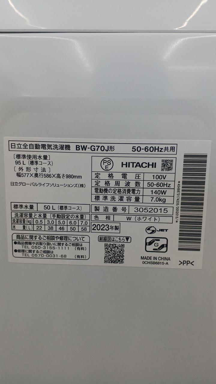 店頭受け取り商品 2023年製 7kg/乾燥機能:送風(簡易乾燥) 幅(本体幅)×高さ×奥行:577(530)×980×586mm |