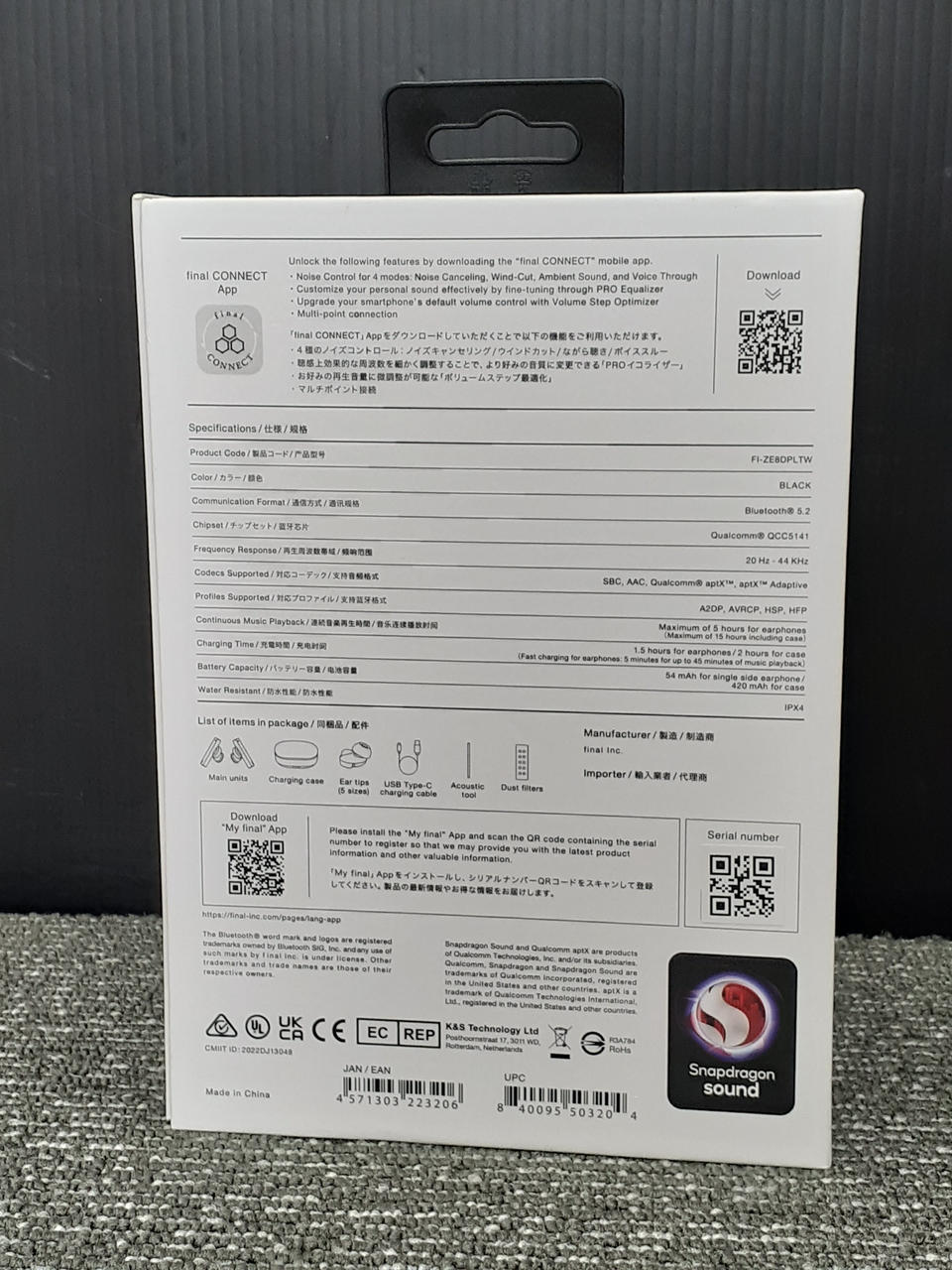 化粧箱、取扱説明書、接続ケーブル、イヤーピース |