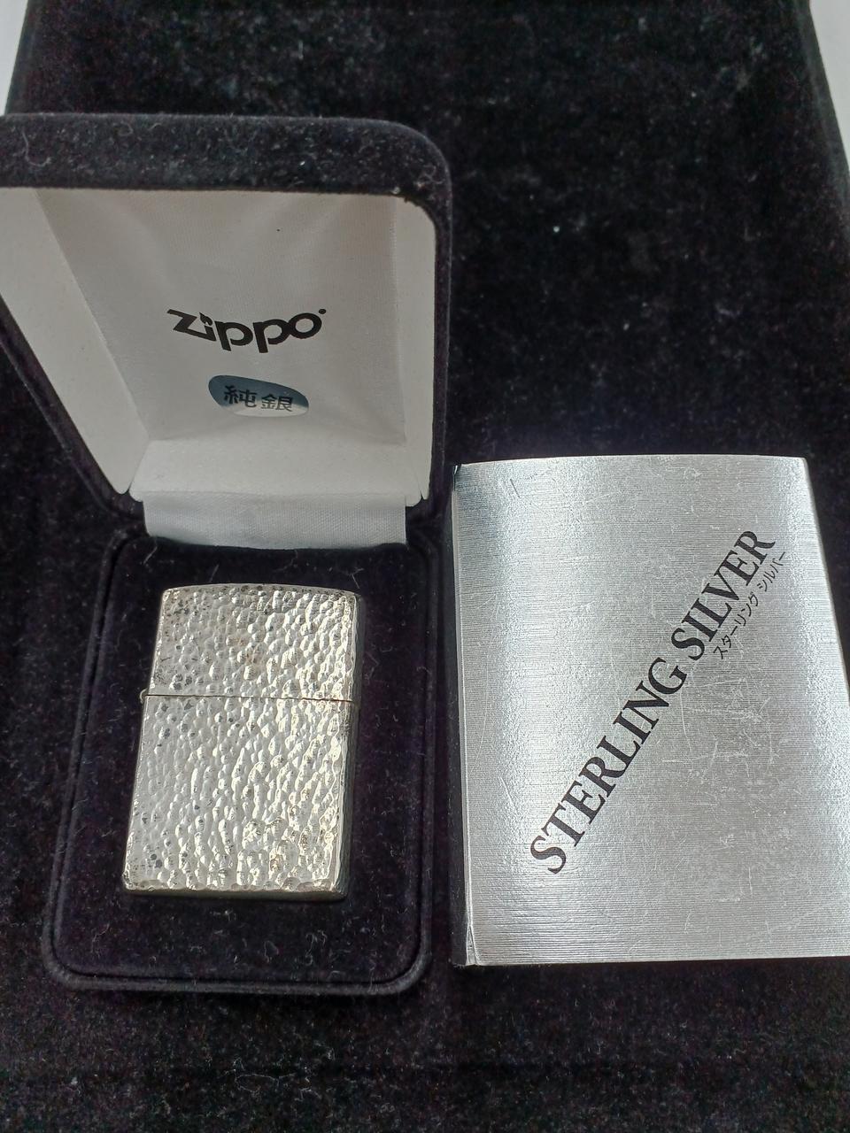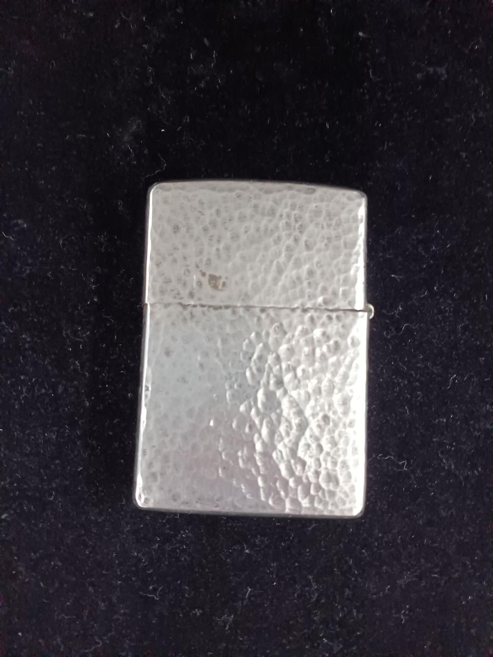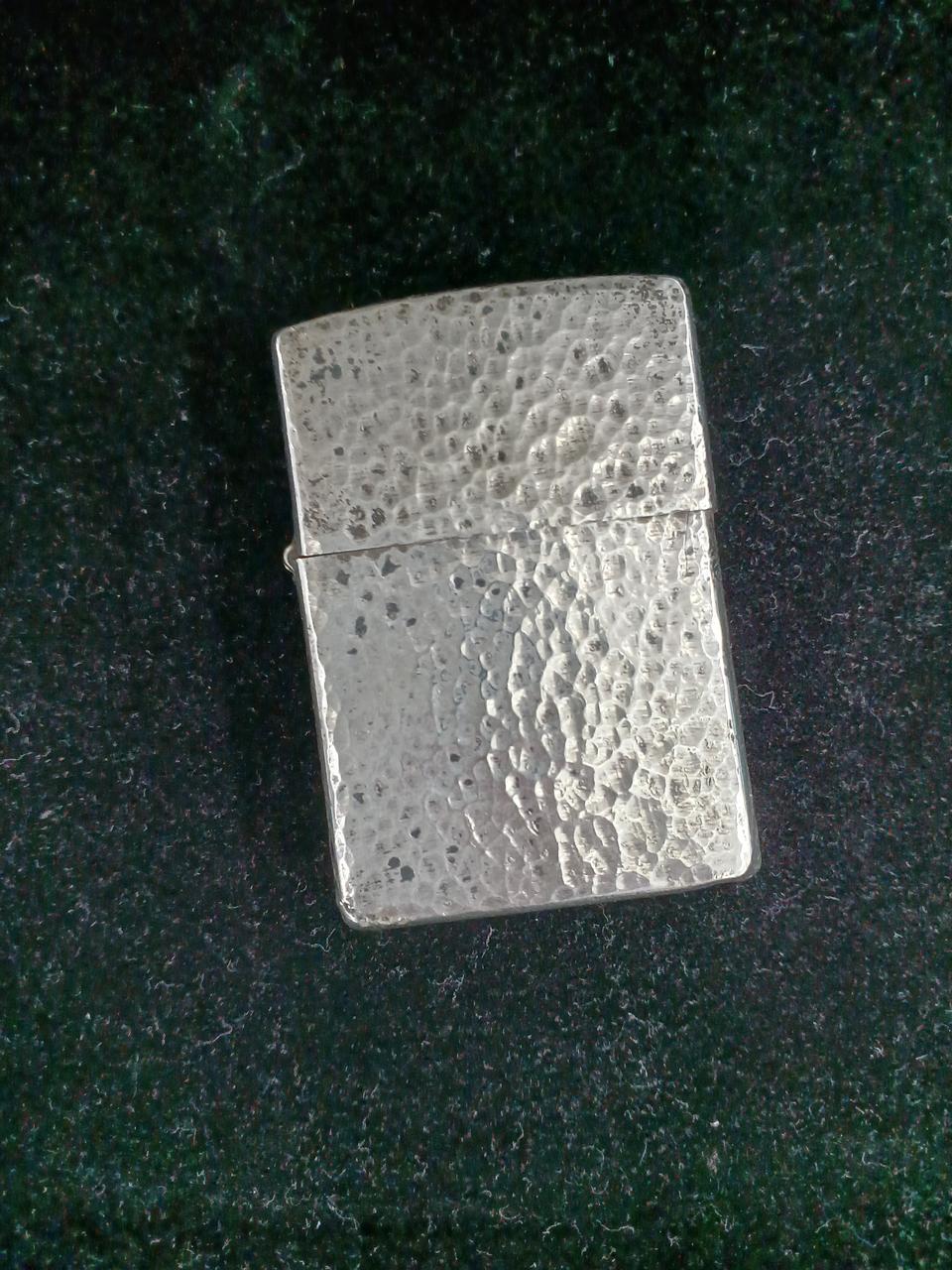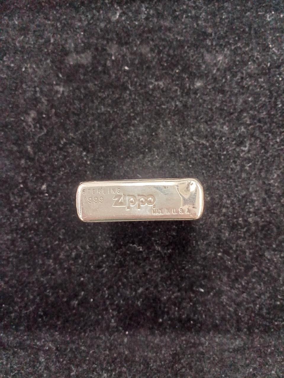 素材にシルバー925を使用しているzippoの高級モデルで、ずっしりとした重量感、特有の白く輝く質感が特徴です。底面にSTERLINGの刻印があり、経年変化による銀特有の黒ずみも見られます。