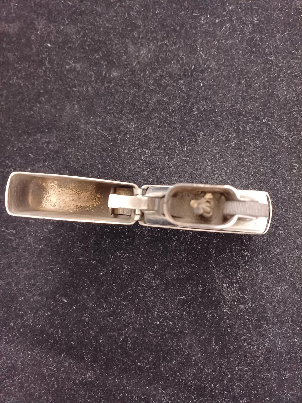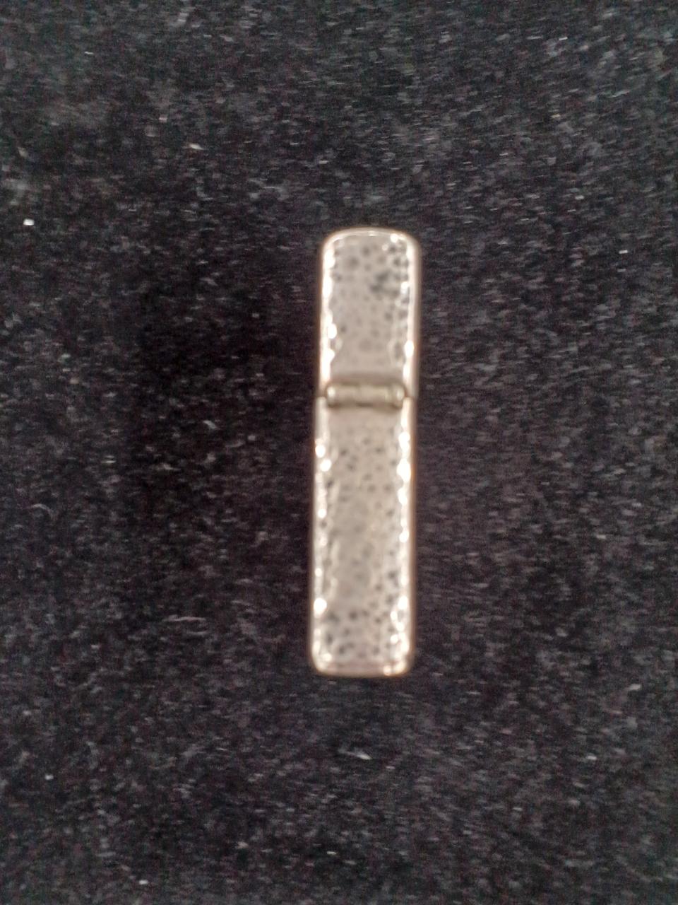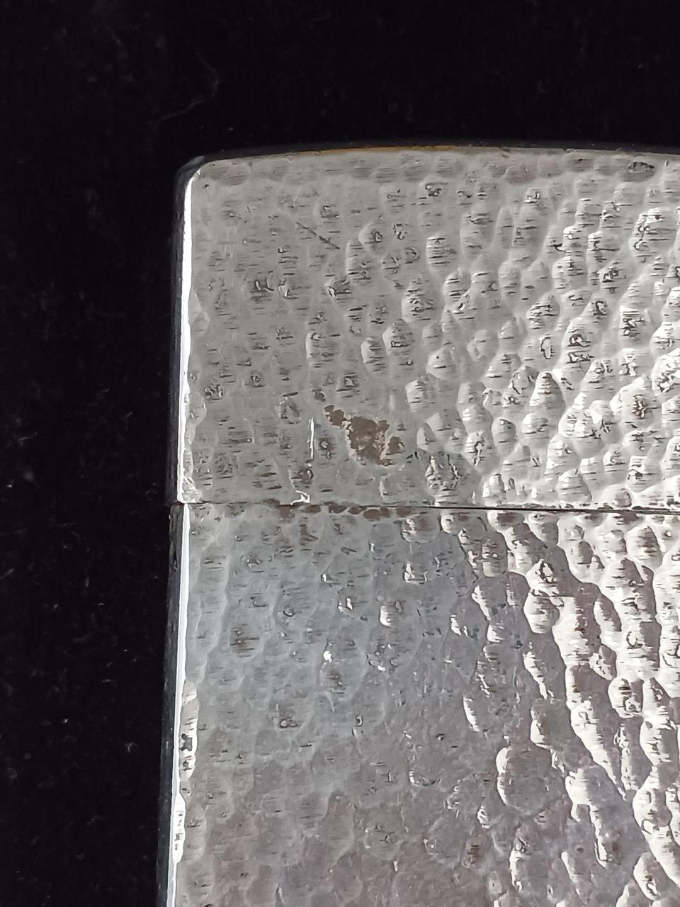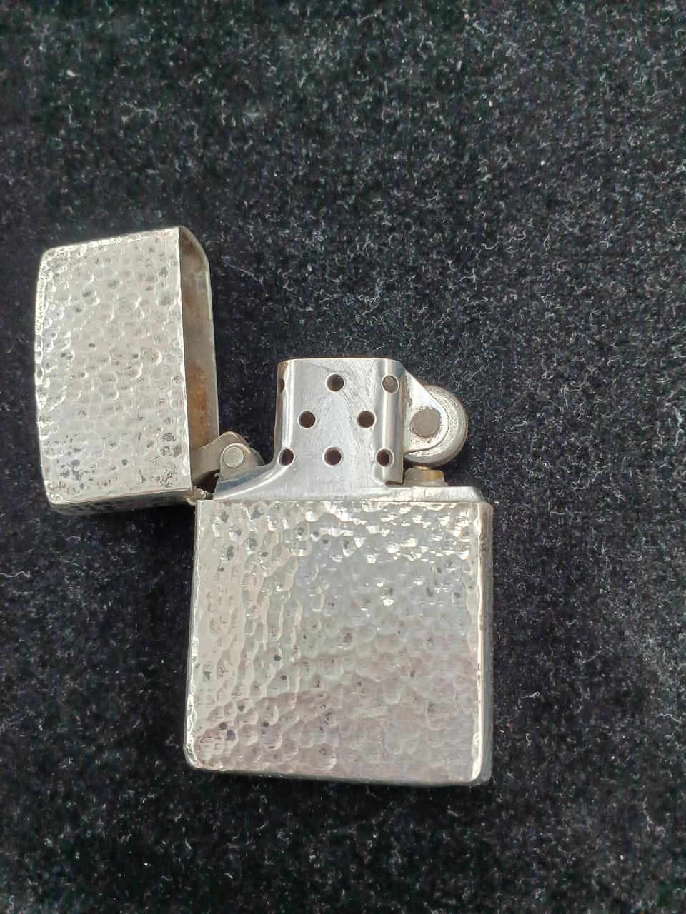 素材にシルバー925を使用しているzippoの高級モデルで、ずっしりとした重量感、特有の白く輝く質感が特徴です。底面にSTERLINGの刻印があり、経年変化による銀特有の黒ずみも見られます。