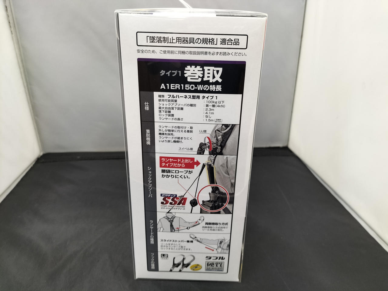 ハーネス用ERリール L2ダブル ショックアブゾーバ種別:第一種(4KN)使用可能質量:100KG以下 最大自由落下距離:2.3M 落下距離:4.1M |