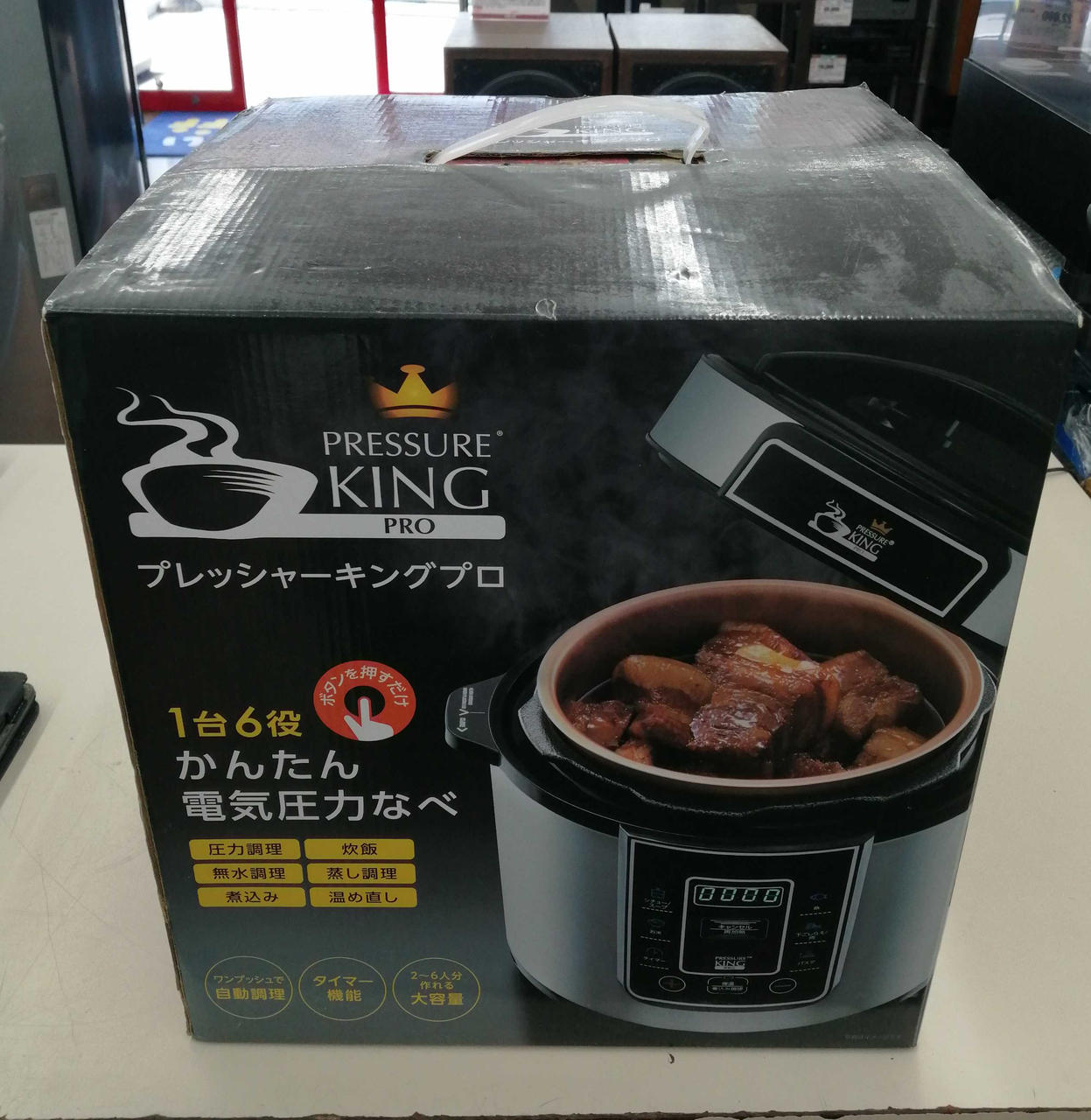 容量:3.2L 1台6役のかんたん電気圧力鍋。タイマー予約機能付き。これ一台で「蒸し調理」「炊飯」「煮込み」「無水調理」「温め直し」の6つの料理ができます |