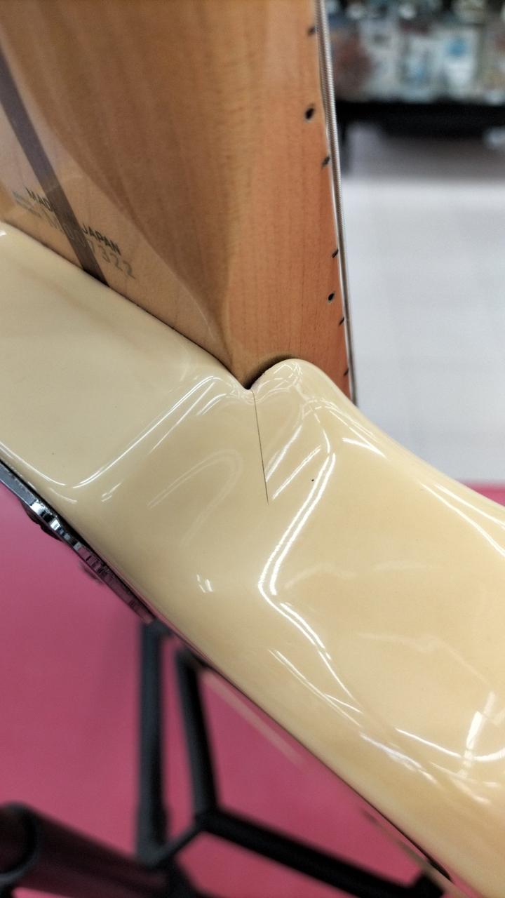 ボディとネックの結合部分にヒビ割あり、バックパネル欠品 |
