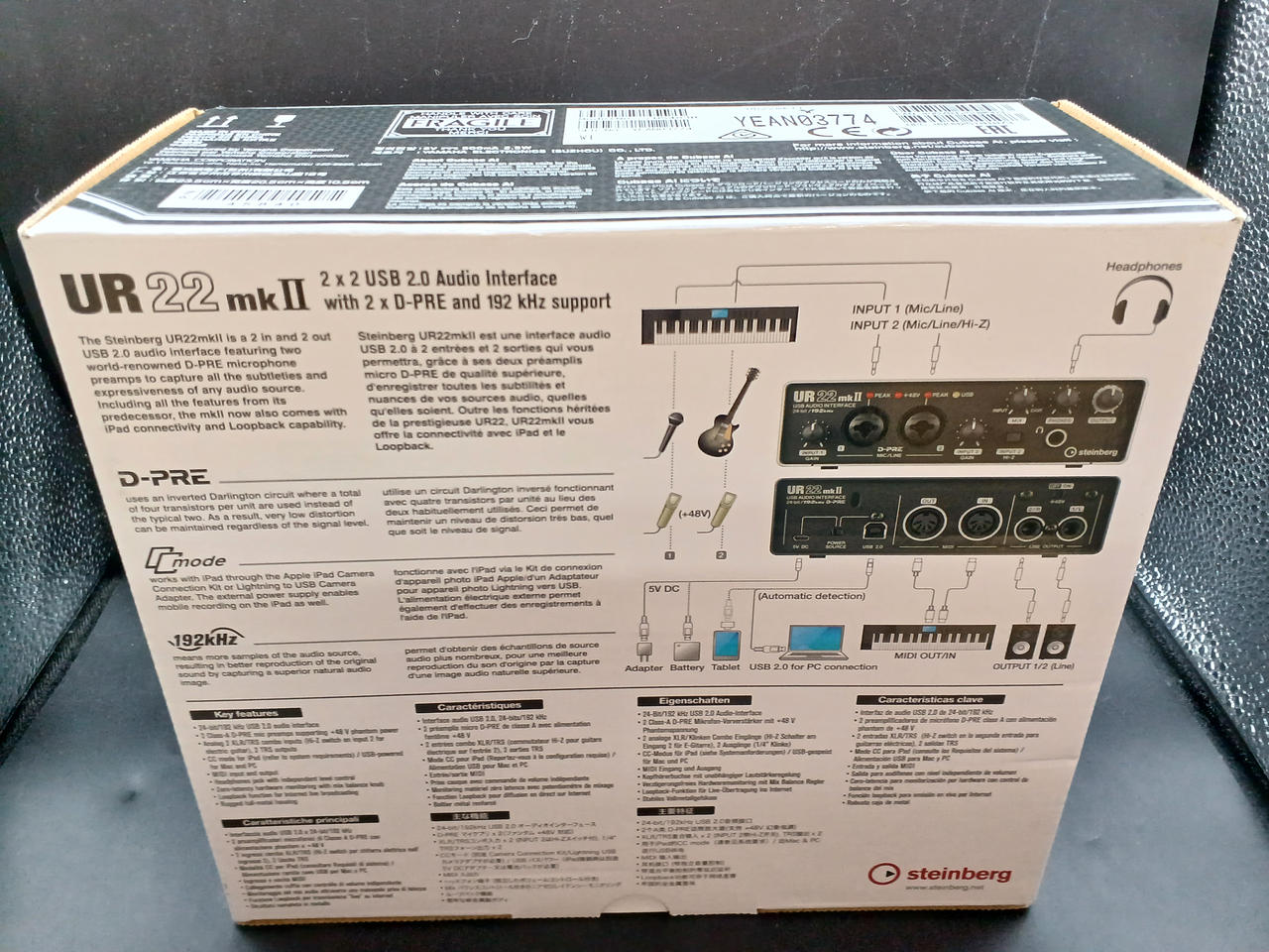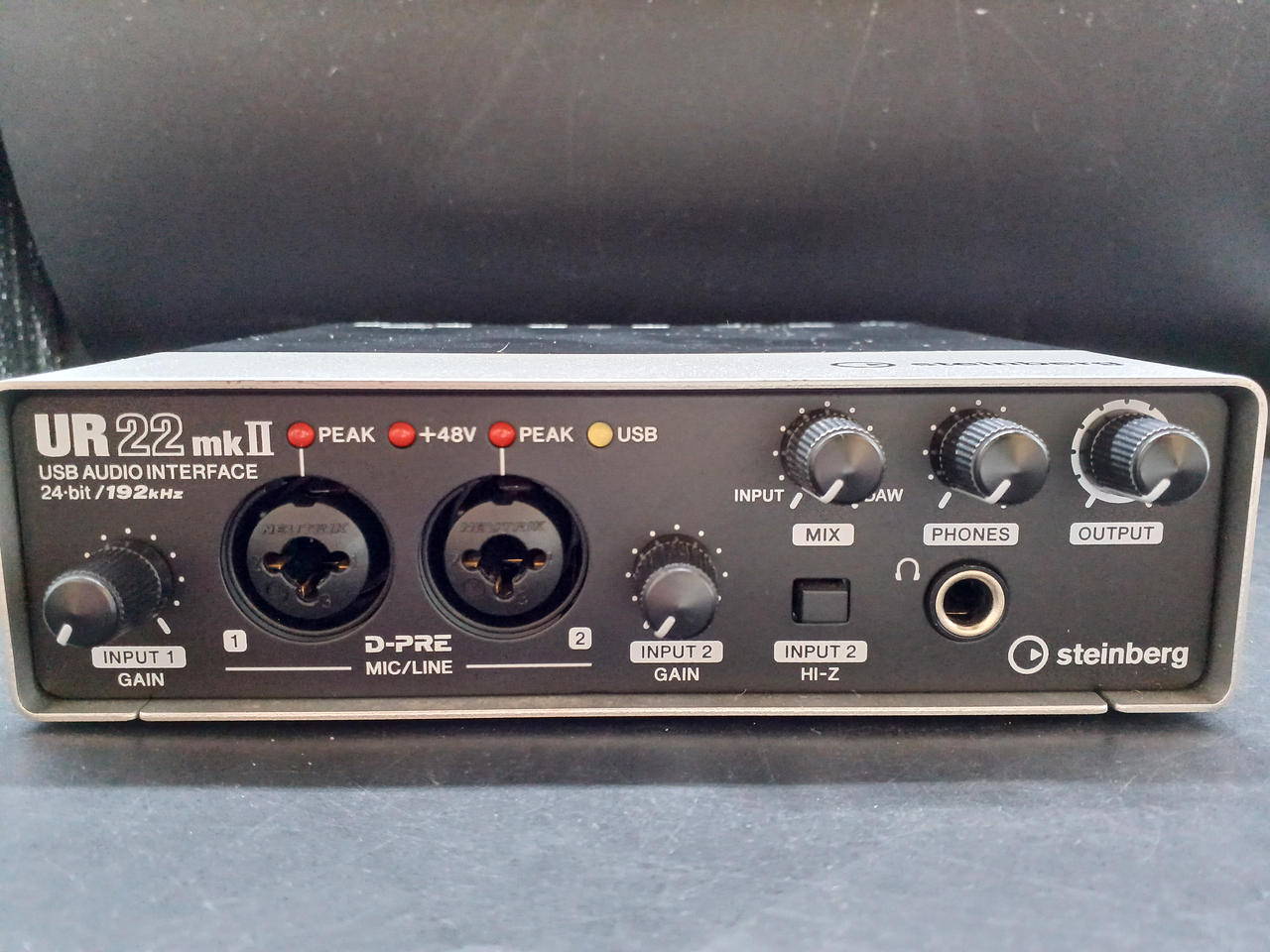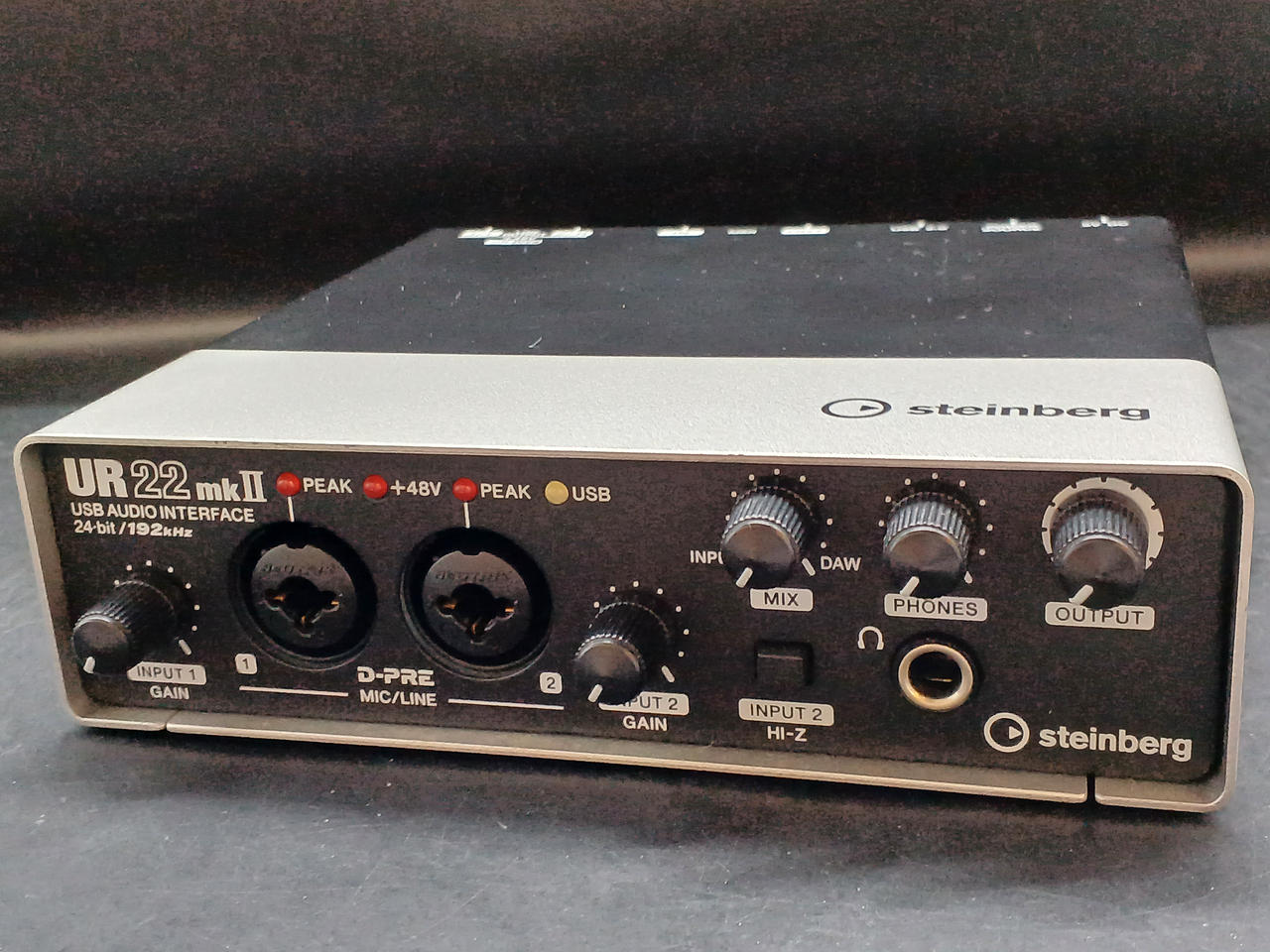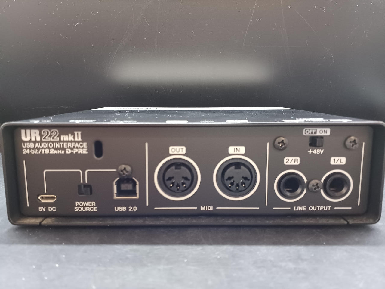 USBバスパワー駆動で、+48Vファンタムパワー、HI-Z入力、MIDI入出力に対応。 |