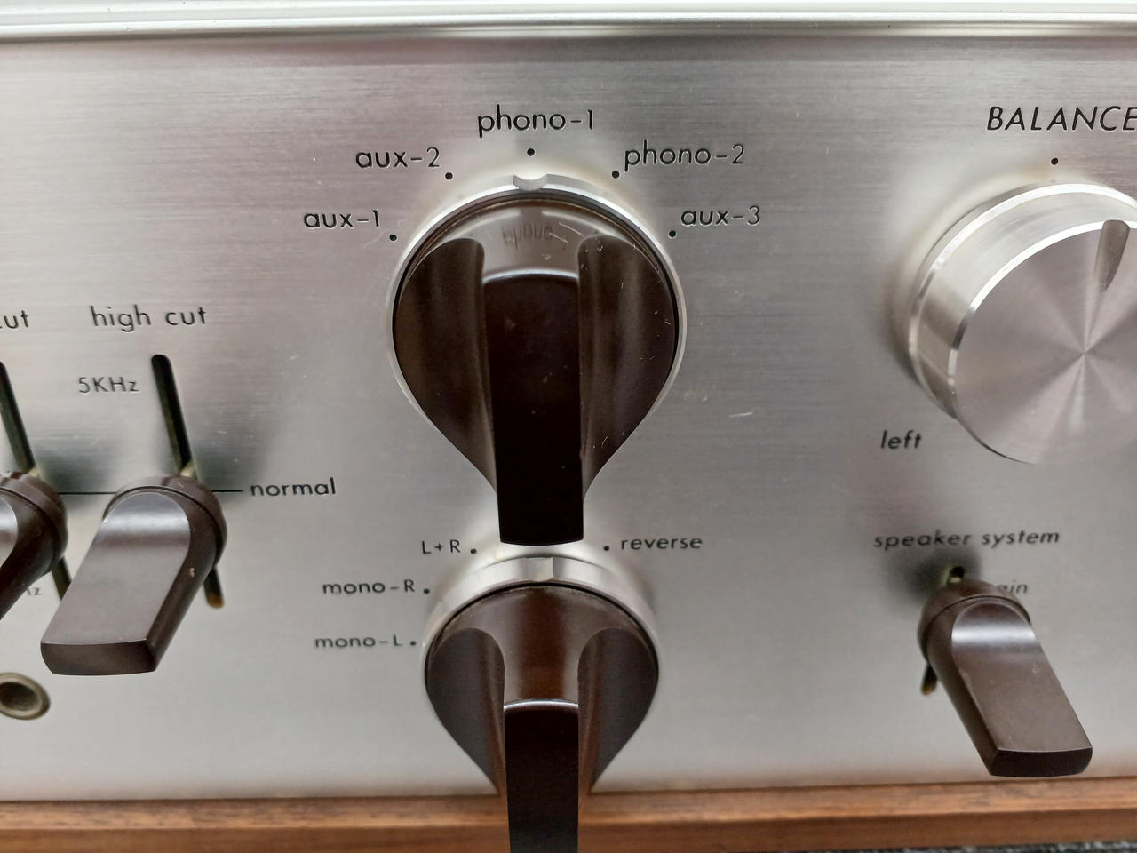入力感度/インピーダンス:Phono1、2:2.2mV/50kΩ Aux1、2、3:200mV/200kΩ |