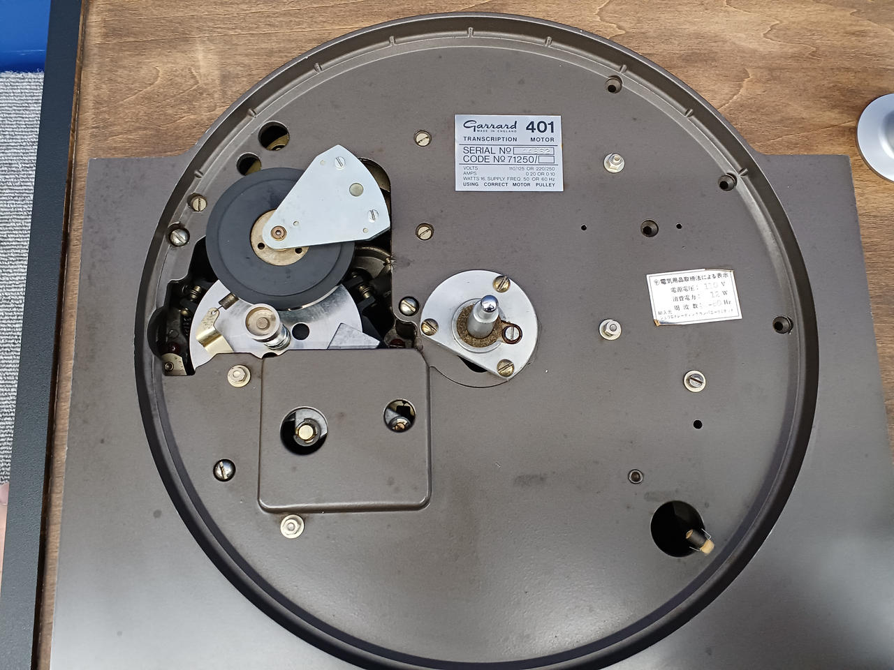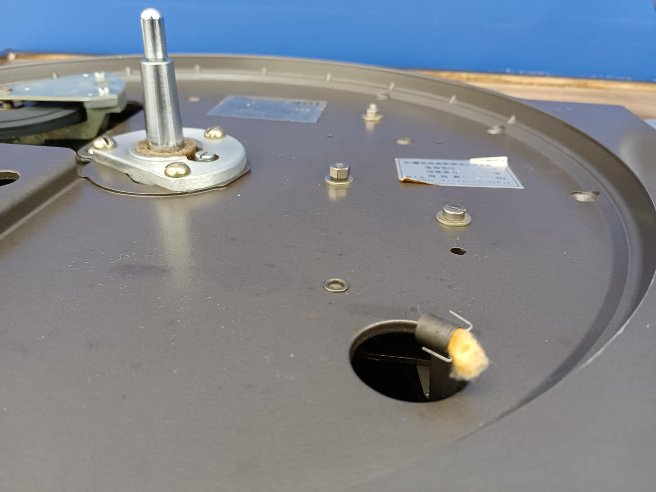 2026年4月メンテナンス済(スラストプレート用ガスケット交換、センタースピンドルオイル洗浄・交換、回転レバー修理、アイドラープーリ洗浄、アームコードチェックOK) |
