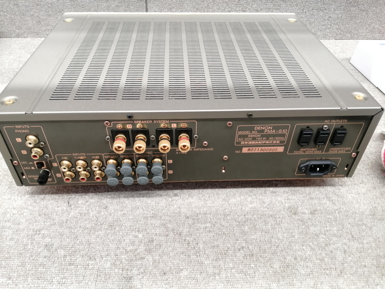 入力感度:150mV(LINE) SN比:102dB(LINE) 外形寸法:幅434x高さ137x奥行365mm |