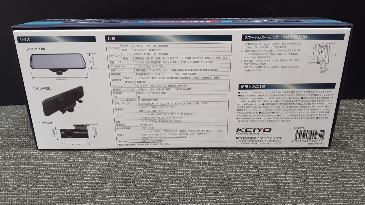 水平方向360度を隙なく録画可能な前後2カメラドライブレコーダー |