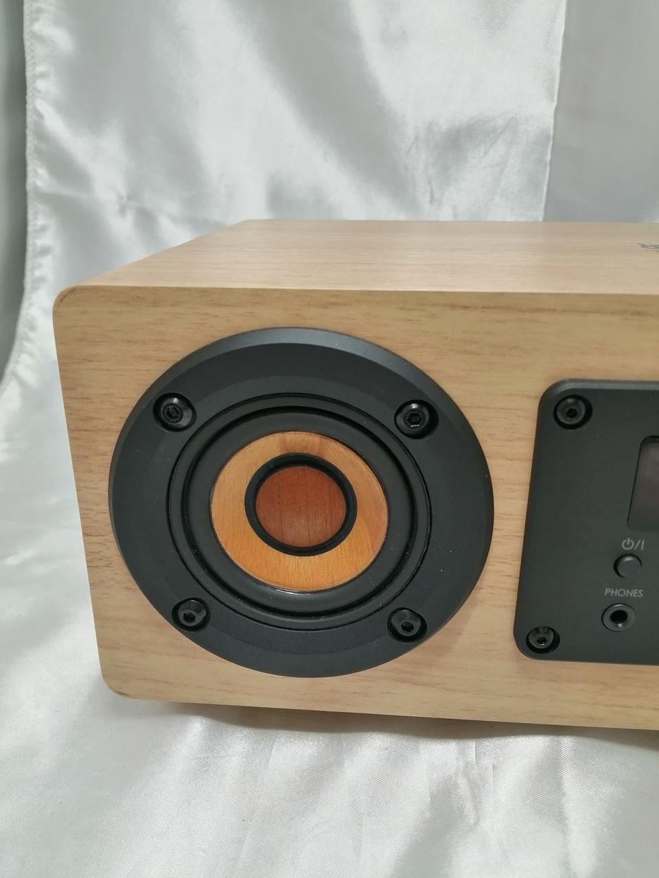 木が奏でる美しい響きの小型ウッドコーンスピーカーを採用。 |