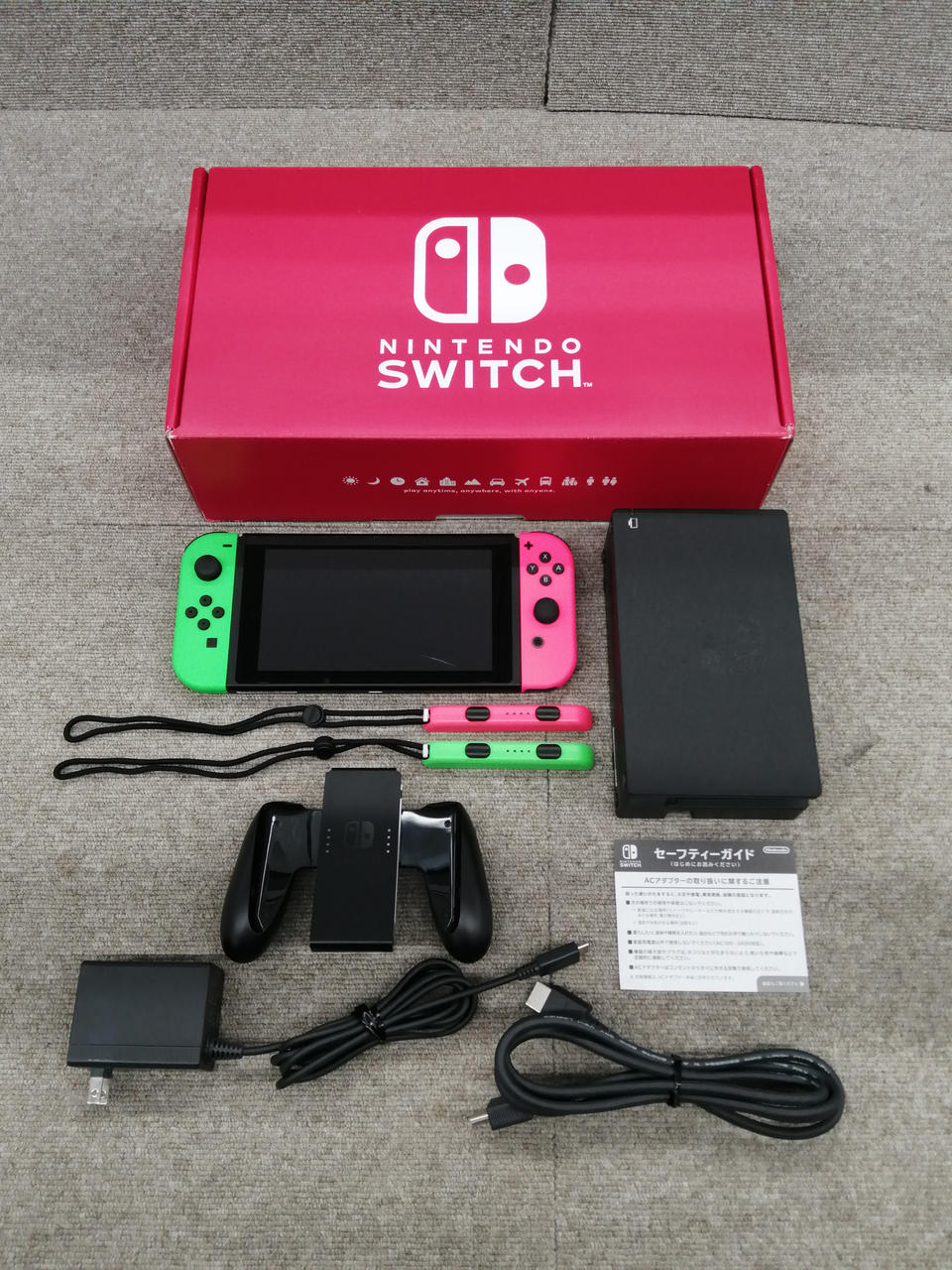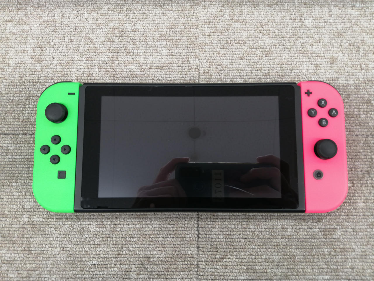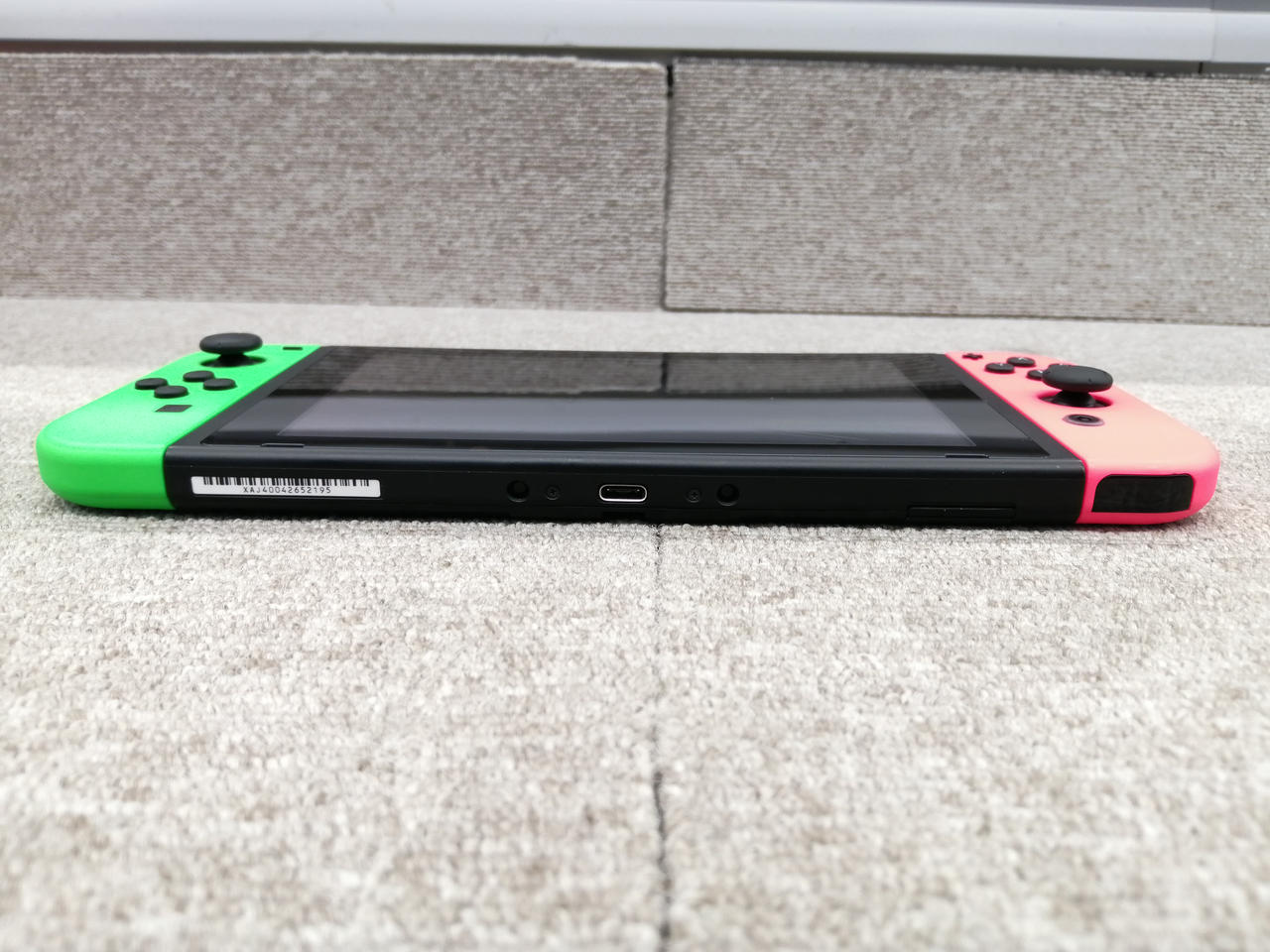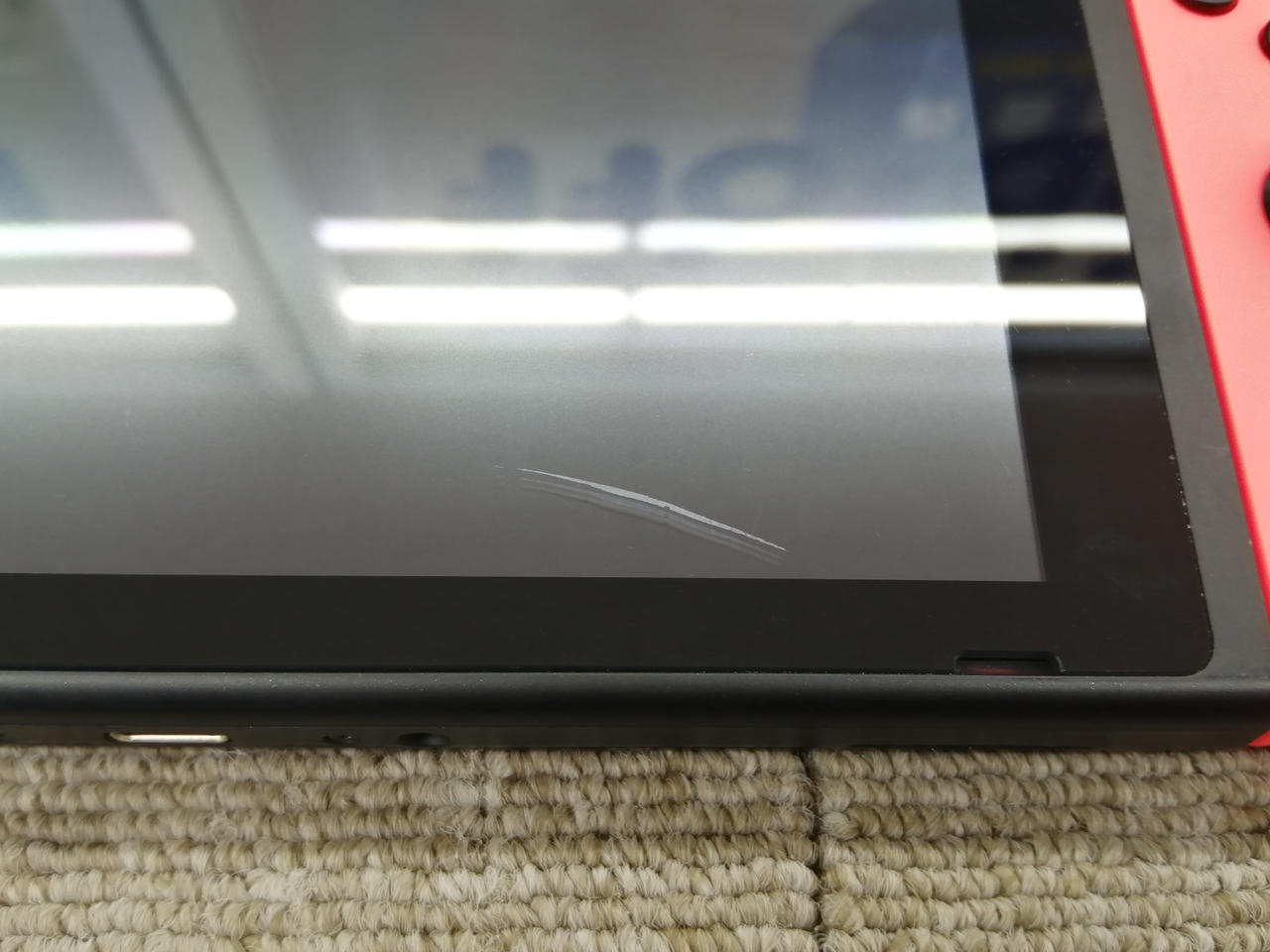 ニンテンドースイッチ初代。比較的美品ですが、画面へ大きなキズあり。 |