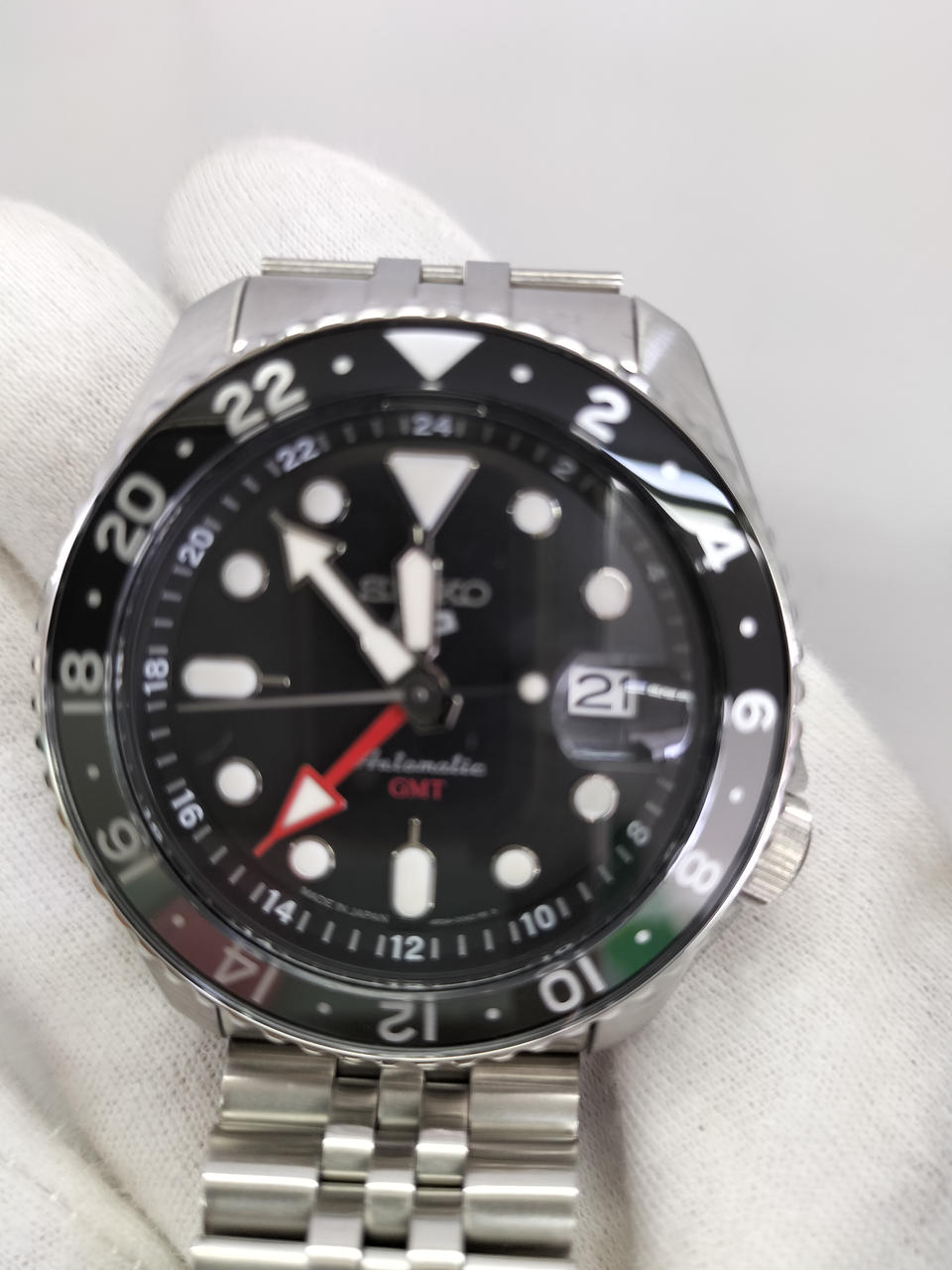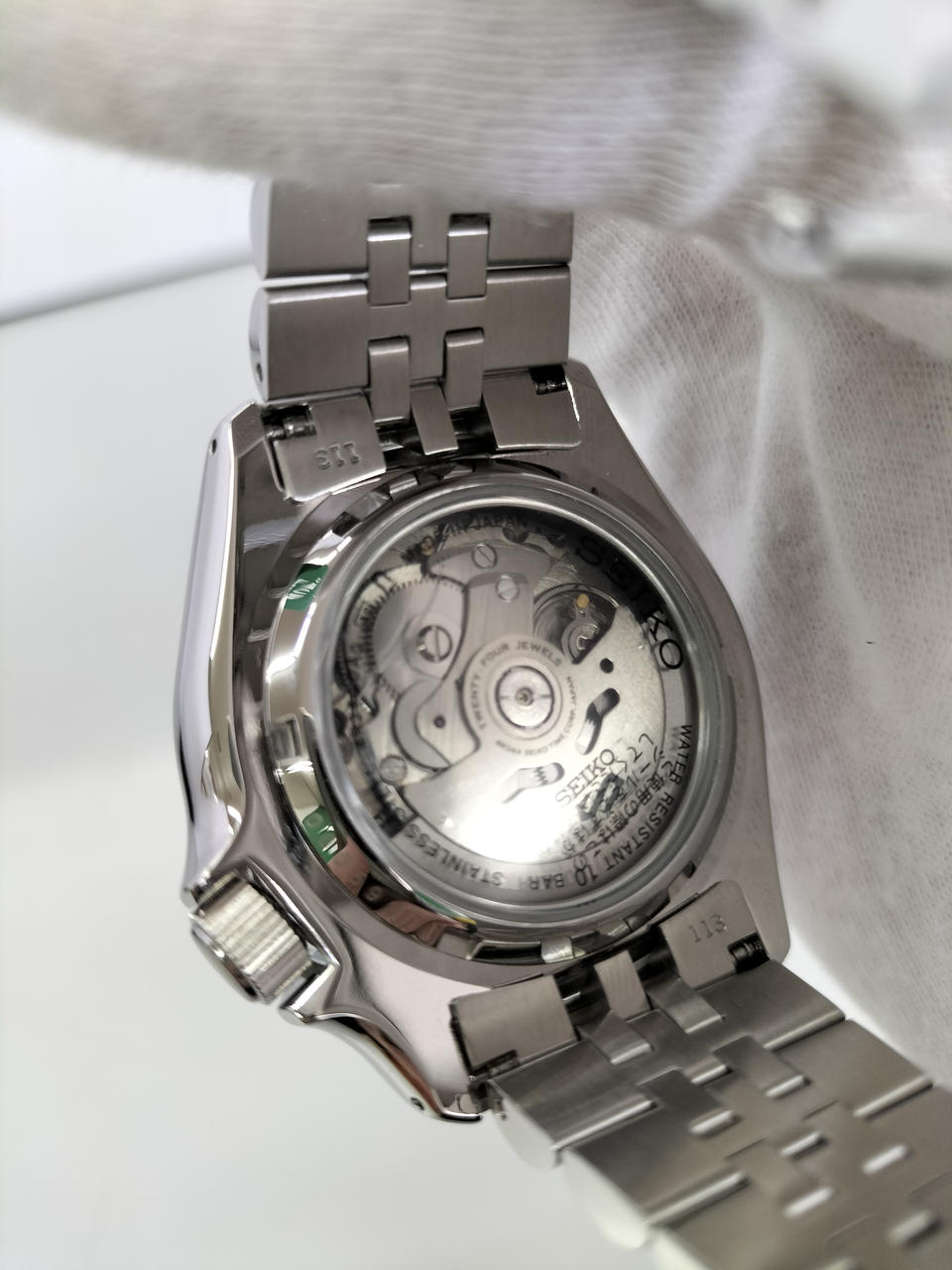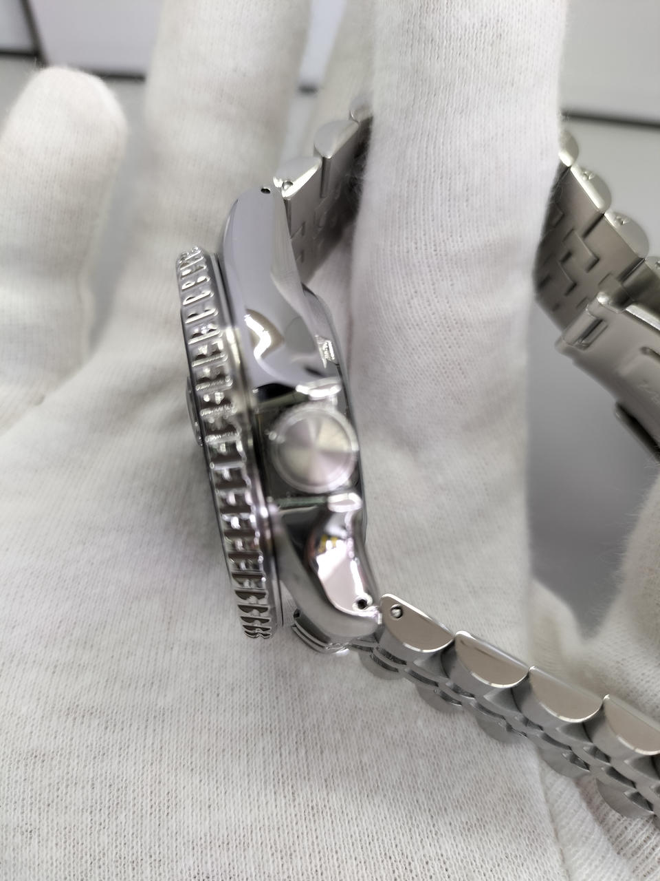 昼夜が瞬時にわかる2色の回転ベゼルの表示板には、艶やかなハードレックスガラスを選択。蒸着処理によるメタリックな色調が美しく輝き、光の照射角度により異なる表情が目を楽しませます。 |