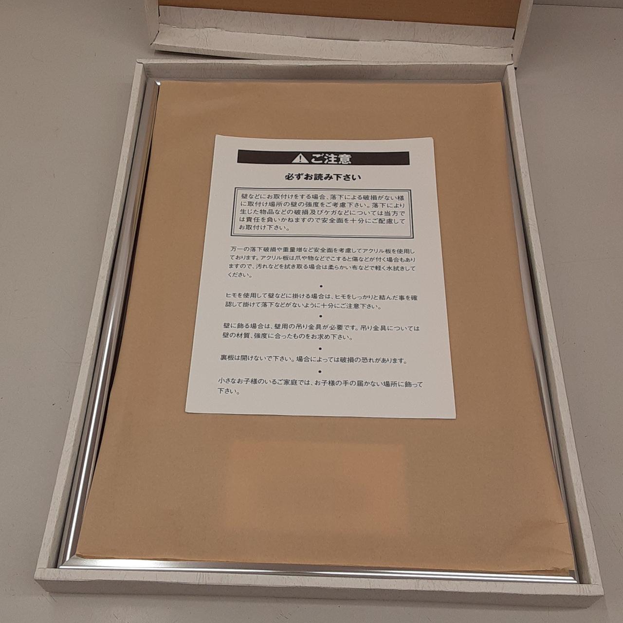 額に細かいキズと汚れあり。写真にある段ボール箱に緩衝材を包んでの発送となります。