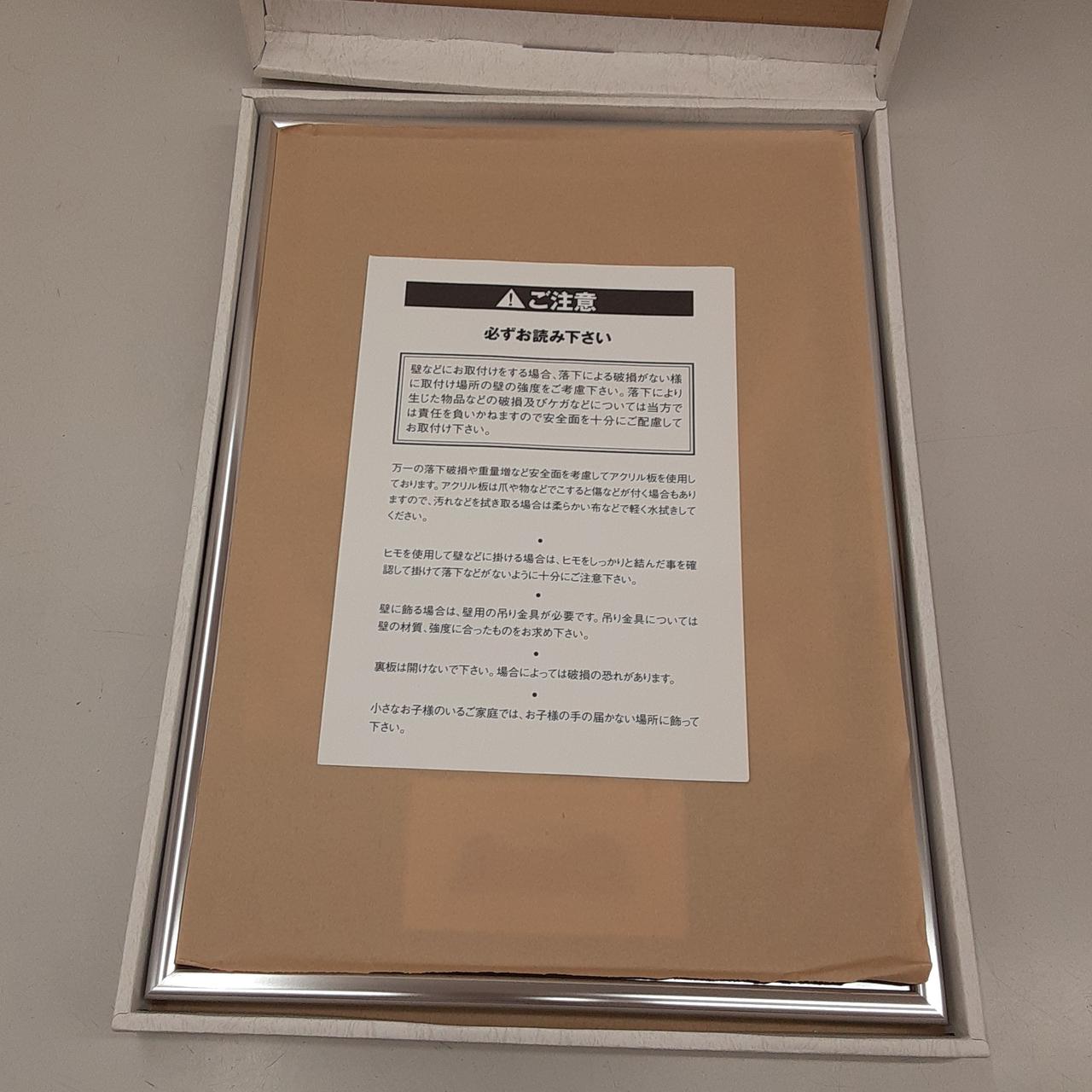 額に細かいキズと汚れあり。写真にある段ボール箱に緩衝材を包んでの発送となります。