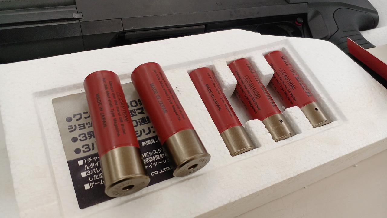 箱、説明書、予備シェルx4 |