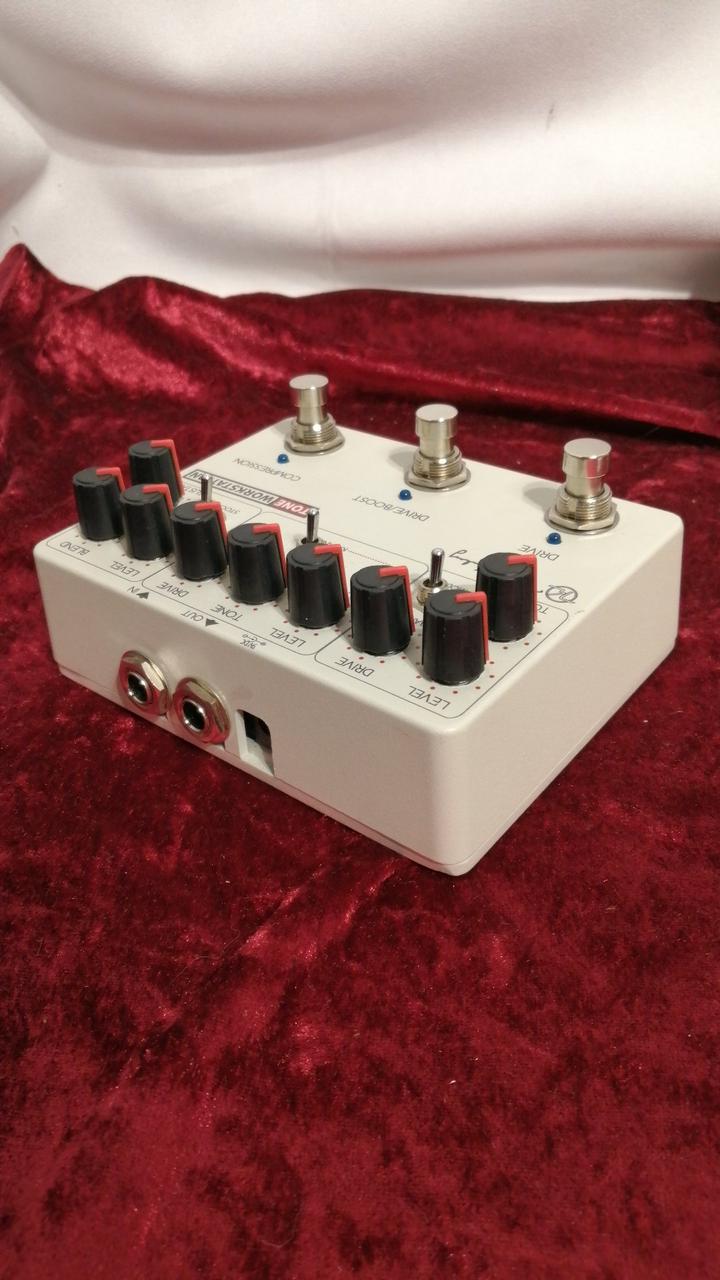 キーリーの代表作であるコンプレッサーと、異なる2つのドライブペダルという3台のエフェクターを封じ込めた1台 |