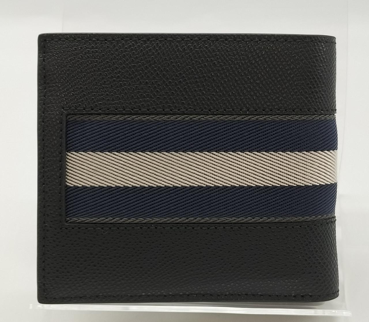 ストライプが特徴的なコンパクトな二つ折り財布です。収納に優れた状態良好の財布ですよ!