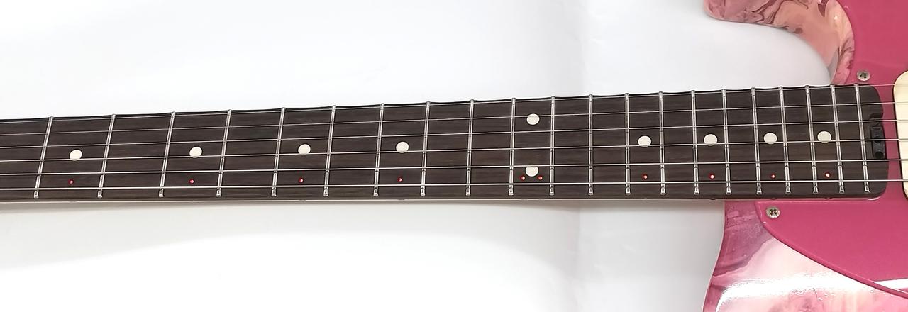 指板にLEDが埋め込まれており赤く光ります。 |