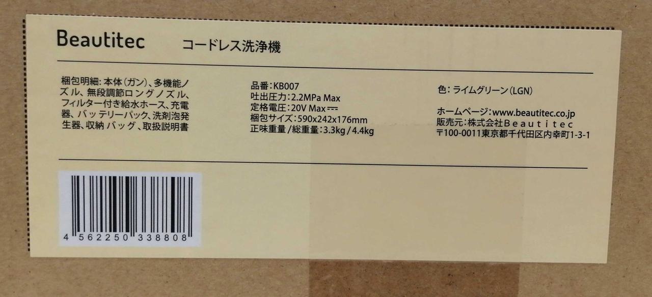BEAUTITEC製 コードレス洗浄機です。未使用品です。本体色:ライムグリーン