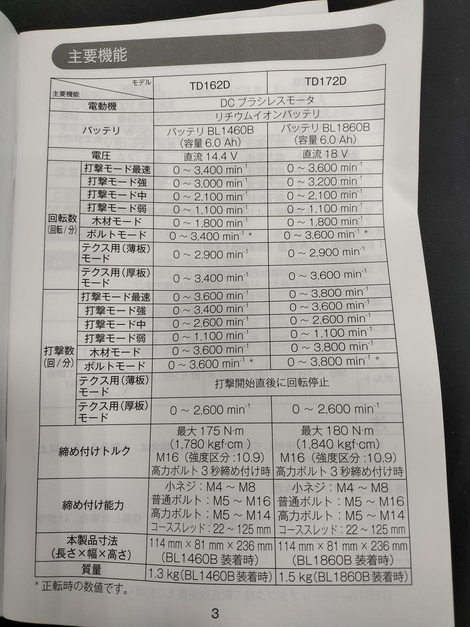 締め付けトルク最大:180N・mm、本体重量:1.5kg、対応バッテリー電圧:18V |