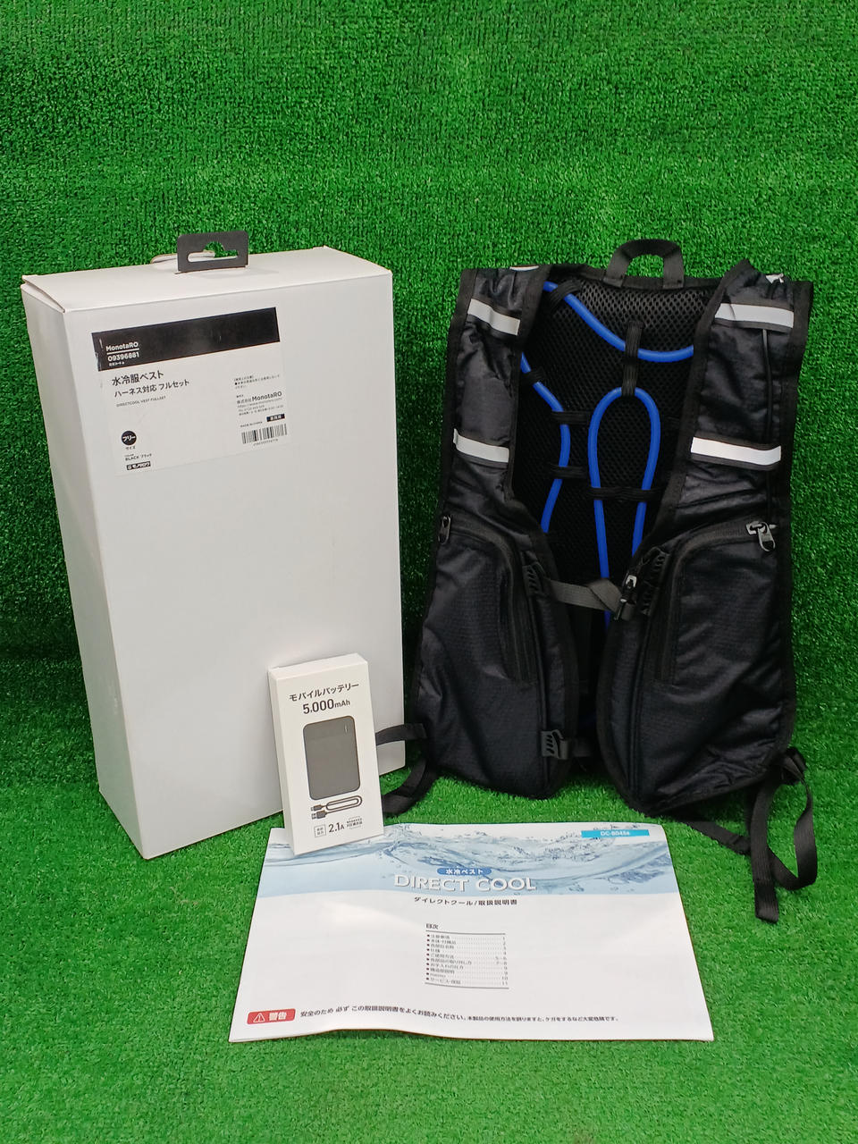 セット内容:専用ウェア×1着、モバイルバッテリー(5000mAh)×1個、充電ケーブル×1個、900ml専用ボトル×1