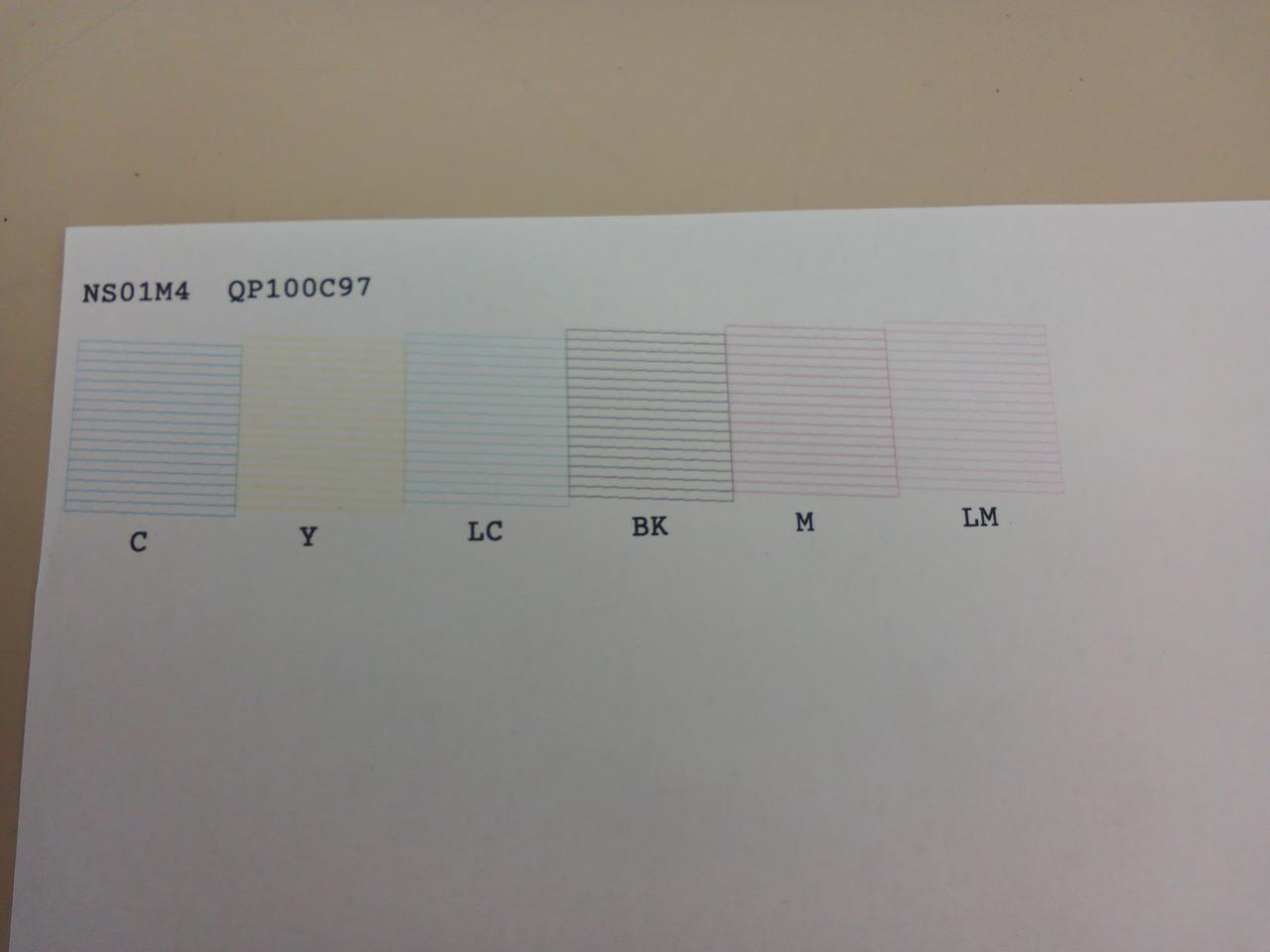 ノズルチェックパターン印刷結果載せています