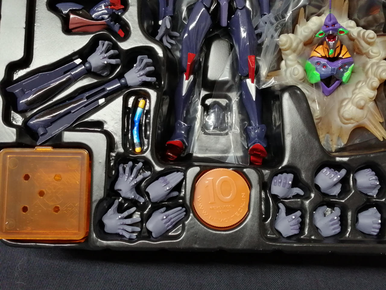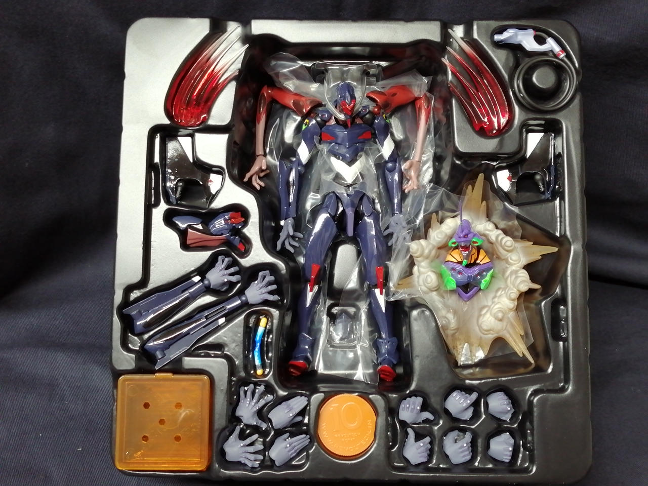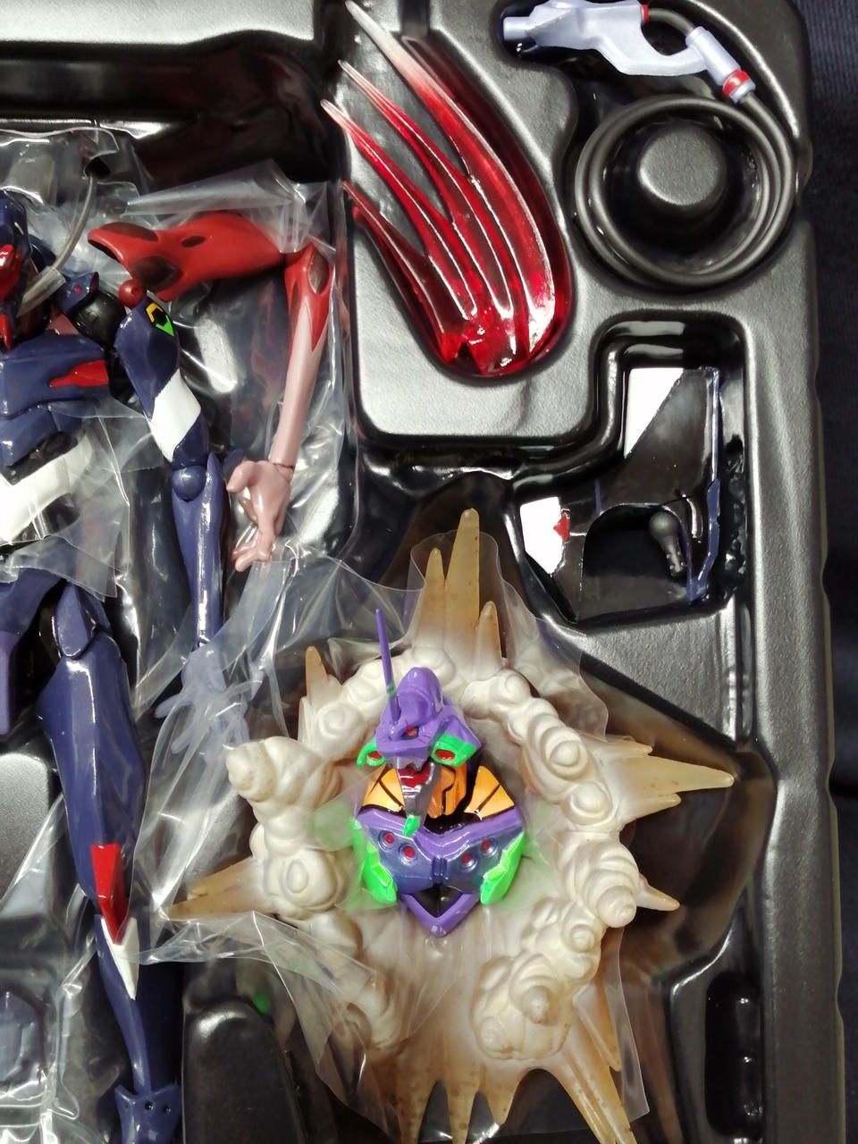 パンフレット、お知らせ、台座一式、交換用パーツ一式、エフェクトパーツ、初号機ディスプレイ、大破したエントリープラグ、アンビリカルケーブル、肩部ウェポンラック×2、リボチップ |