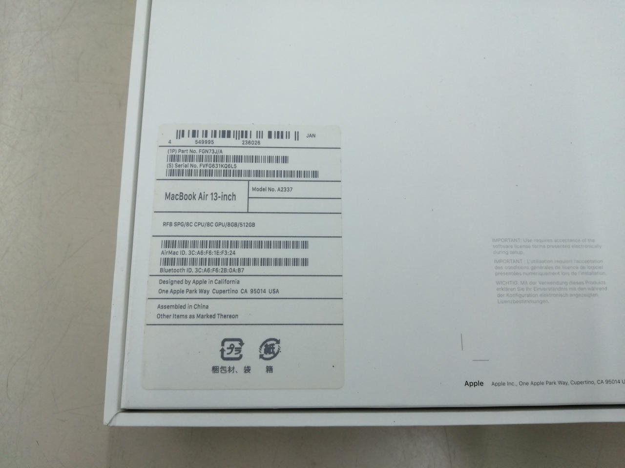 MACOS:Monterey12.7.6 CPU:M1 RAM:8GB SSD:512GB |
