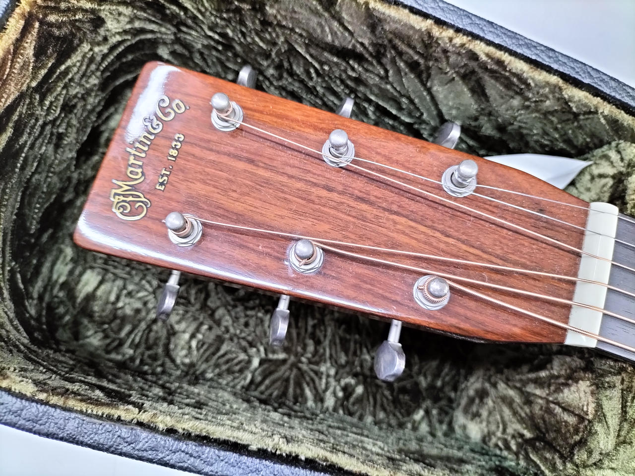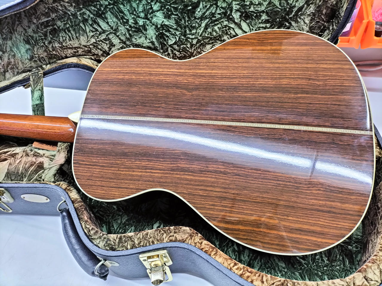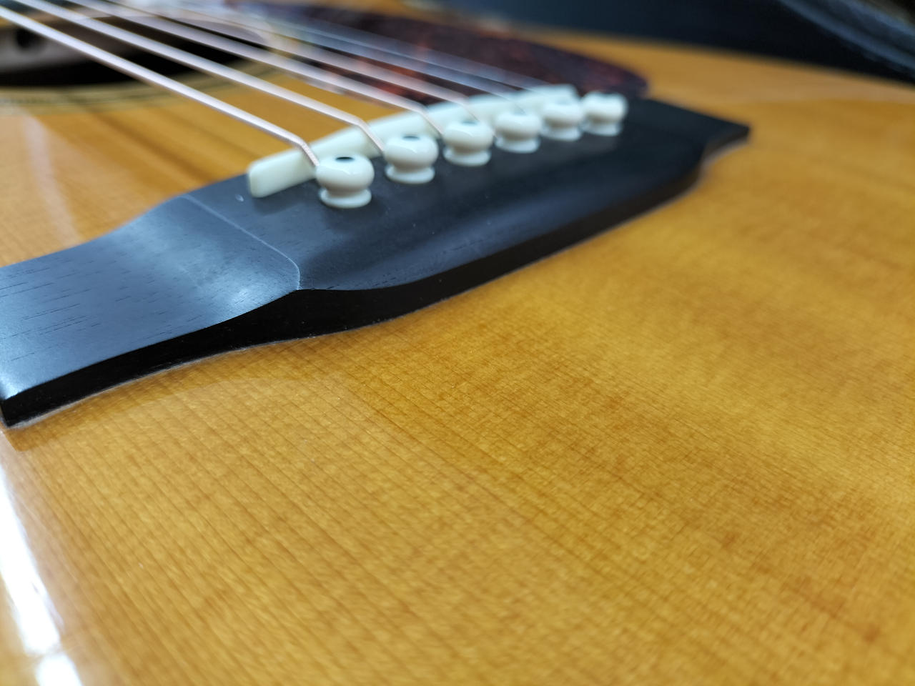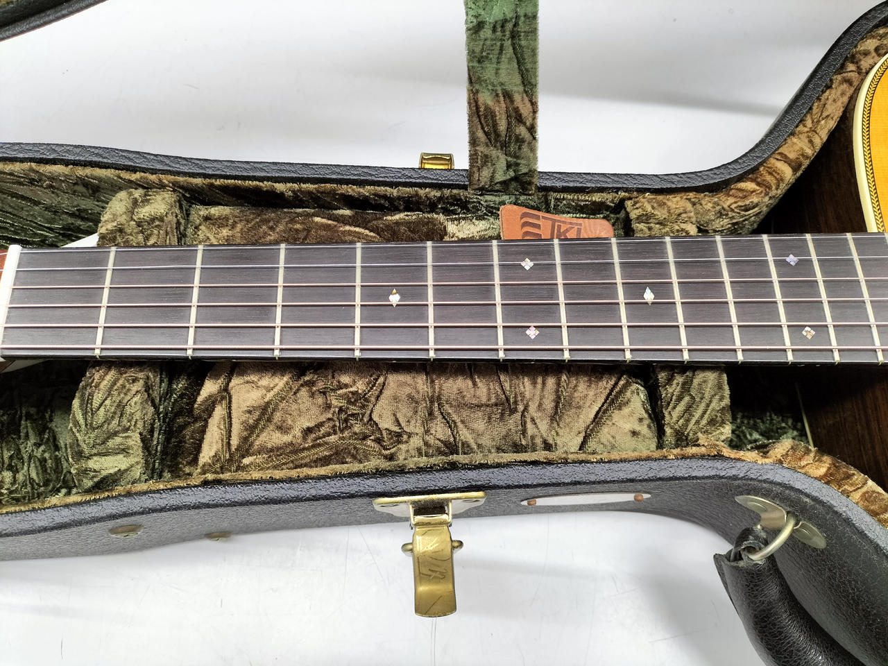 サウンドホールの横側のバインディング少し劣化気味です。 6弦側のネック波打有り。 トラスロッド余裕あり。 |