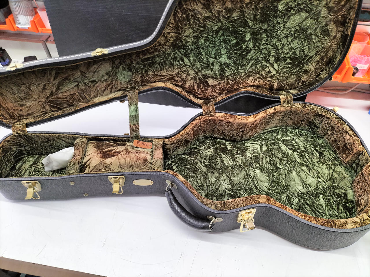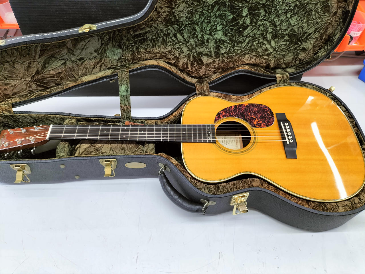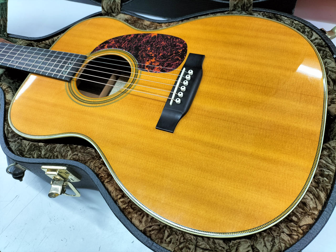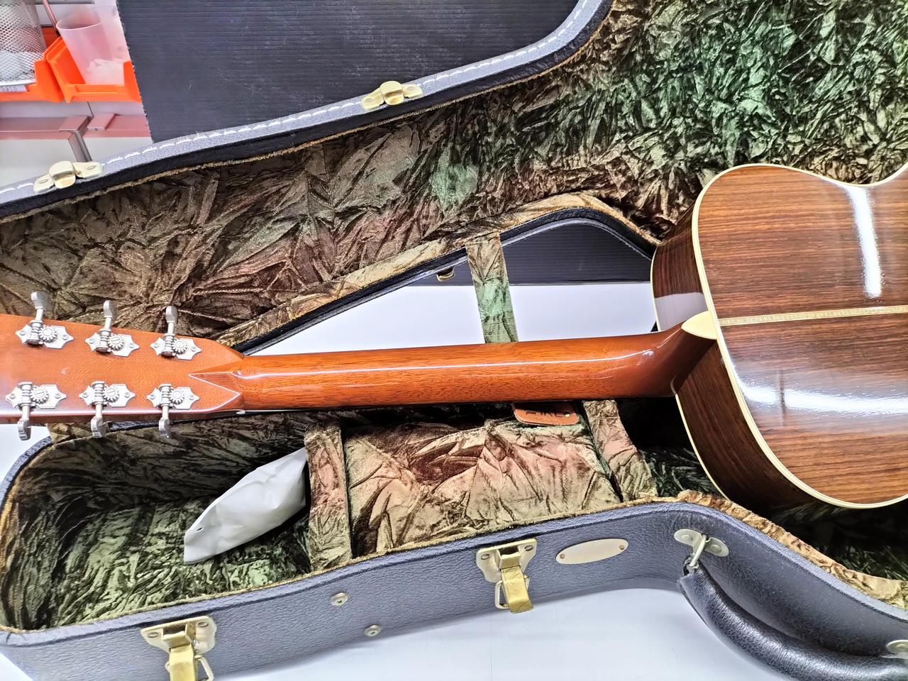 サウンドホールの横側のバインディング少し劣化気味です。 6弦側のネック波打有り。 トラスロッド余裕あり。 |