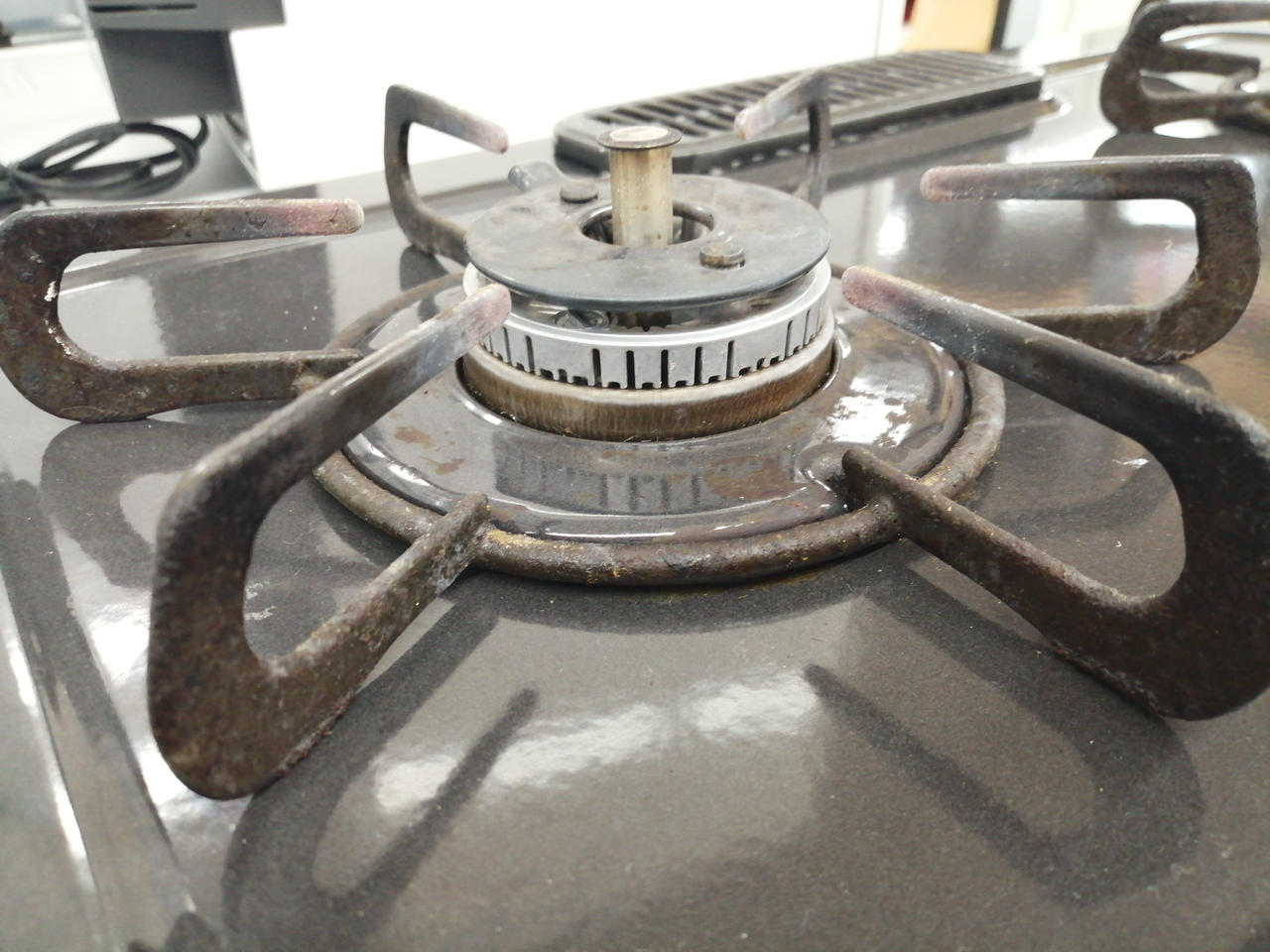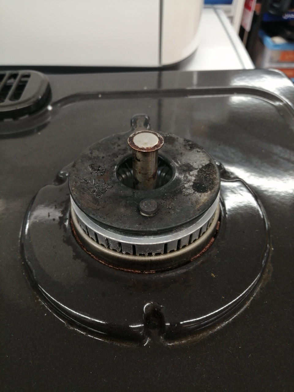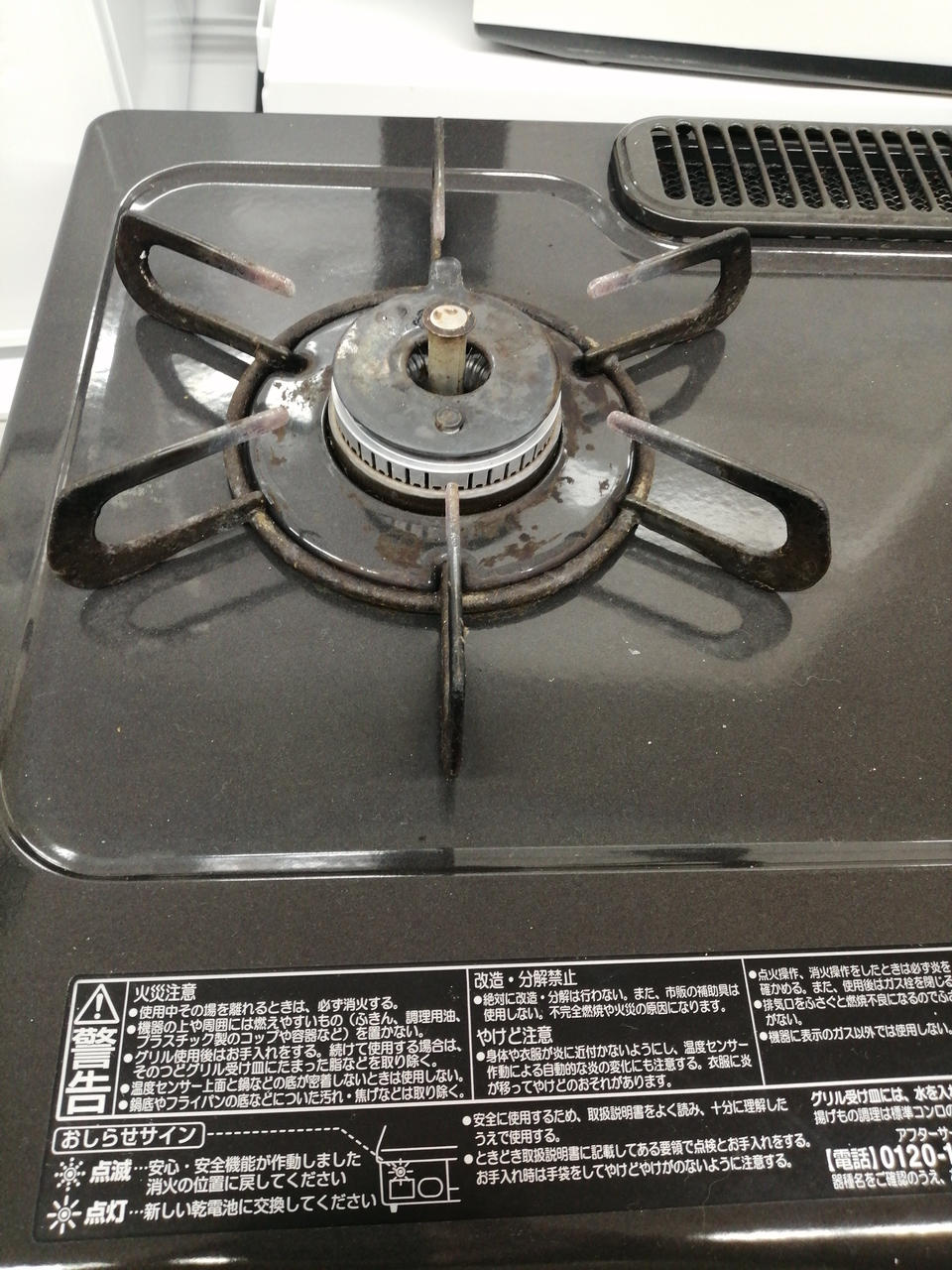 五徳部分、天板部分に焦げ付き汚れあります。