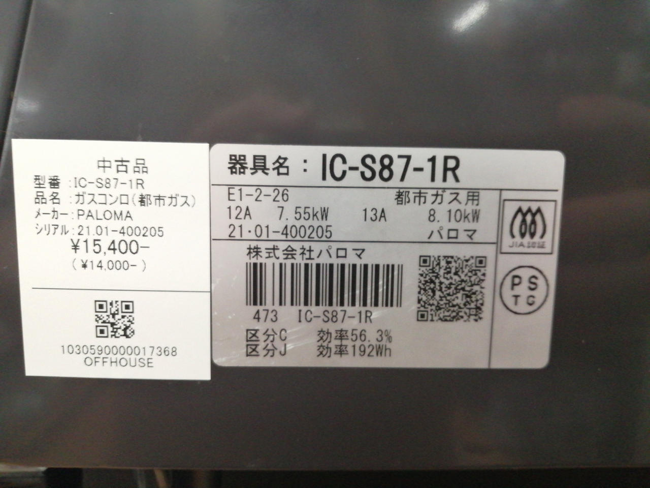 ガスホース付属。