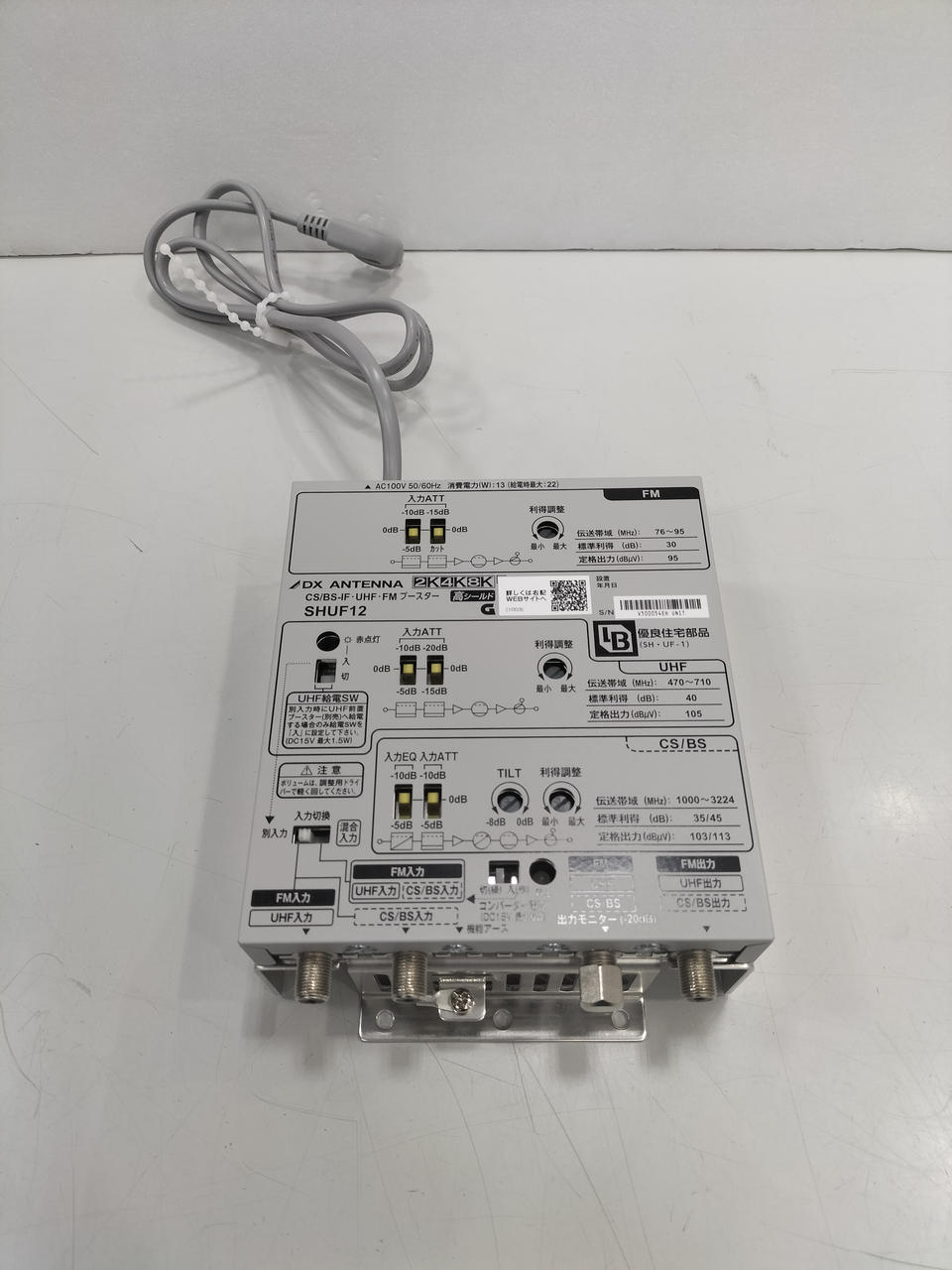4K8K衛星放送(3224MHz)対応の、CS/BS-IF、UHF、FM/V-Lowを増幅するブースターです。 |