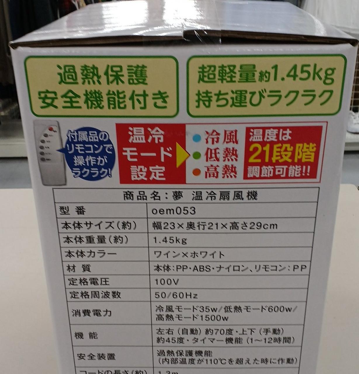 一年中活躍: 夏は冷風、冬は温風のファンヒーターとして使用可能 |