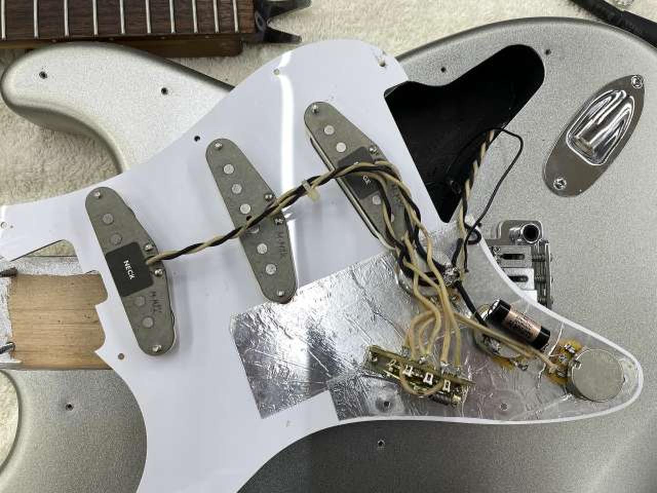 ピックガード交換歴あり、隠れて見えませんが1か所ビス穴があります。ロッド:多少余裕あり、ネック:ストレート |