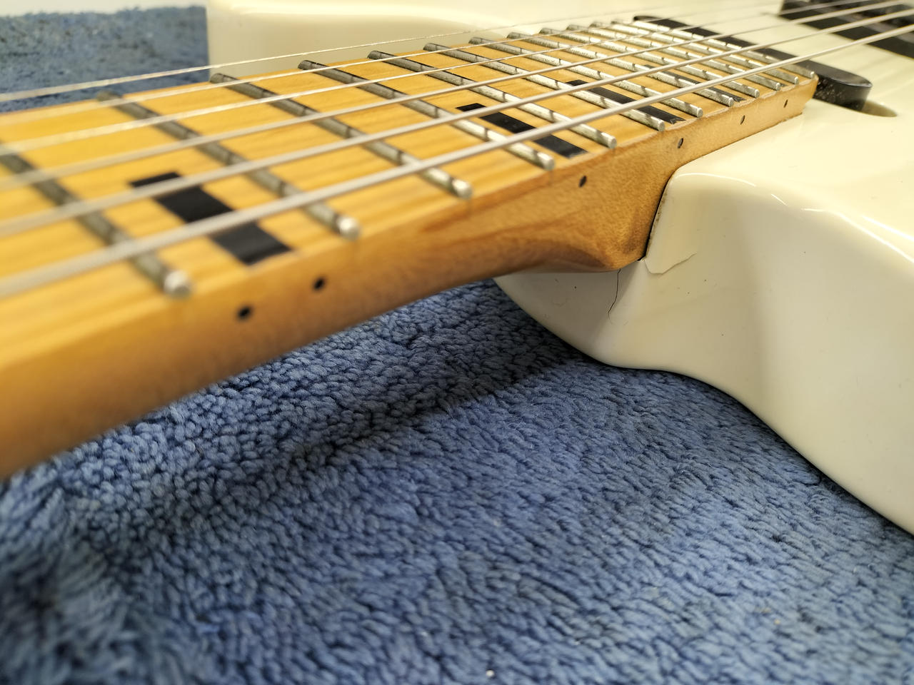ネックはストレート トラスロッドは左周り余裕有、右回り90度前後で渋いです。 弦高:6弦12F:約1.5mm/1弦12F:約1.3mm |