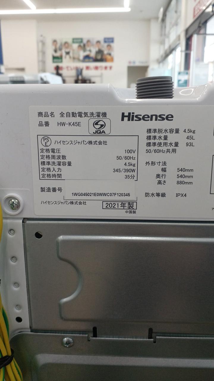 店頭受取商品 2021年製 4.5KG 幅(排水ホースを含む)540(ボディ幅:500)×高さ880×奥行540 mm |