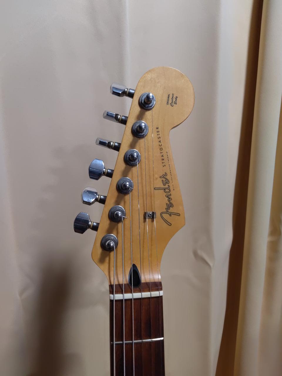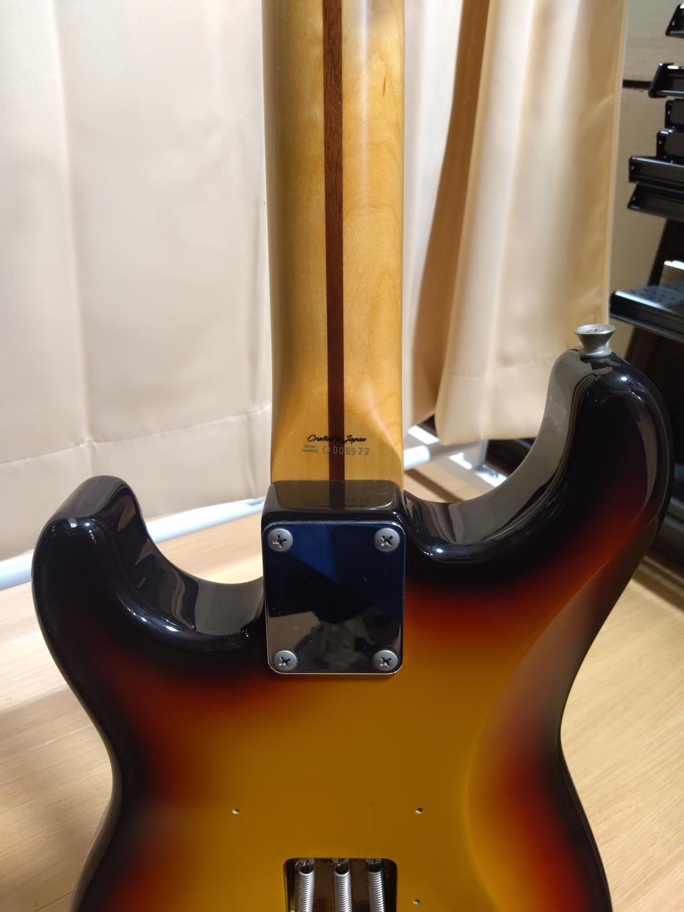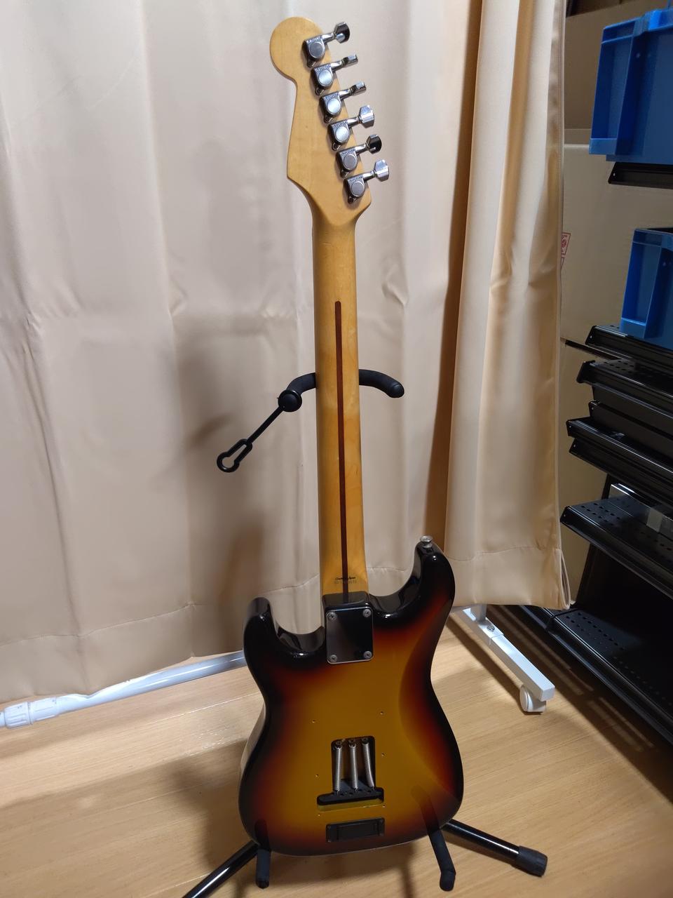 9V電池稼働、コンパクトなサイズで610mmスケールの22フレット仕様 コントロールはVol/Tone・OFF-ON-Dist切り替えスイッチになっています 弦高12フレット約2.5mm フレット残量約80% フレット溝にやや隙間あり ※本体のみ、トレモロアーム欠品 |